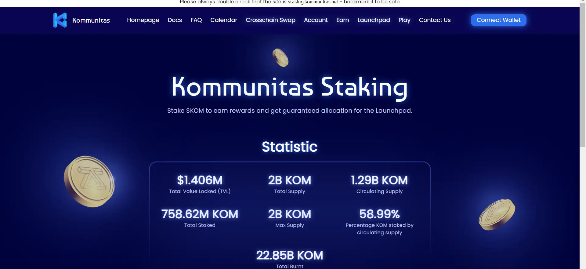 - Staking Rewards: Users who stake their $KOM tokens are rewarded with staking incentives, including additional tokens and increased access to IDO allocations. This encourages active participation and long-term engagement with the platform.