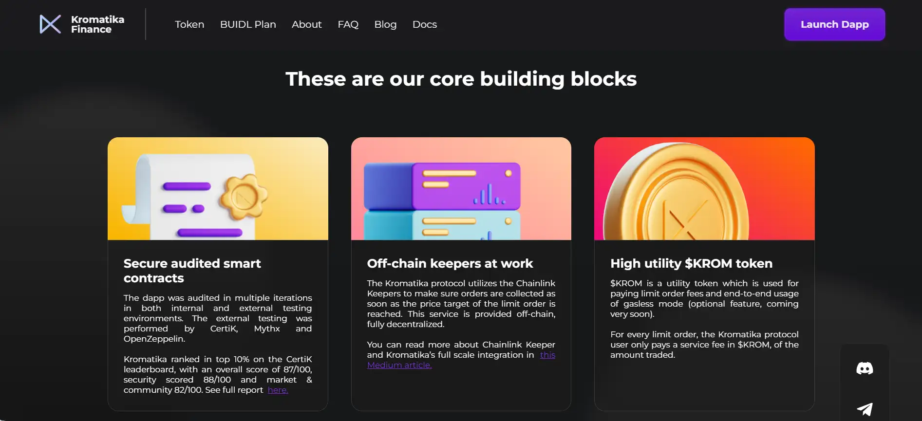 - Audited and Secure: Smart contracts have been audited by top firms including CertiK, MythX, and OpenZeppelin, with Kromatika ranking in the top 10% of CertiK’s leaderboard.