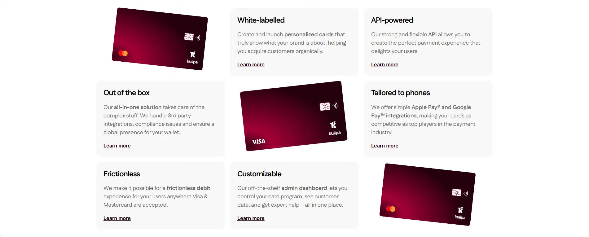 - Turnkey Deployment: Get a full solution with compliance, licensing, settlement, and card manufacturing all handled by Kulipa.