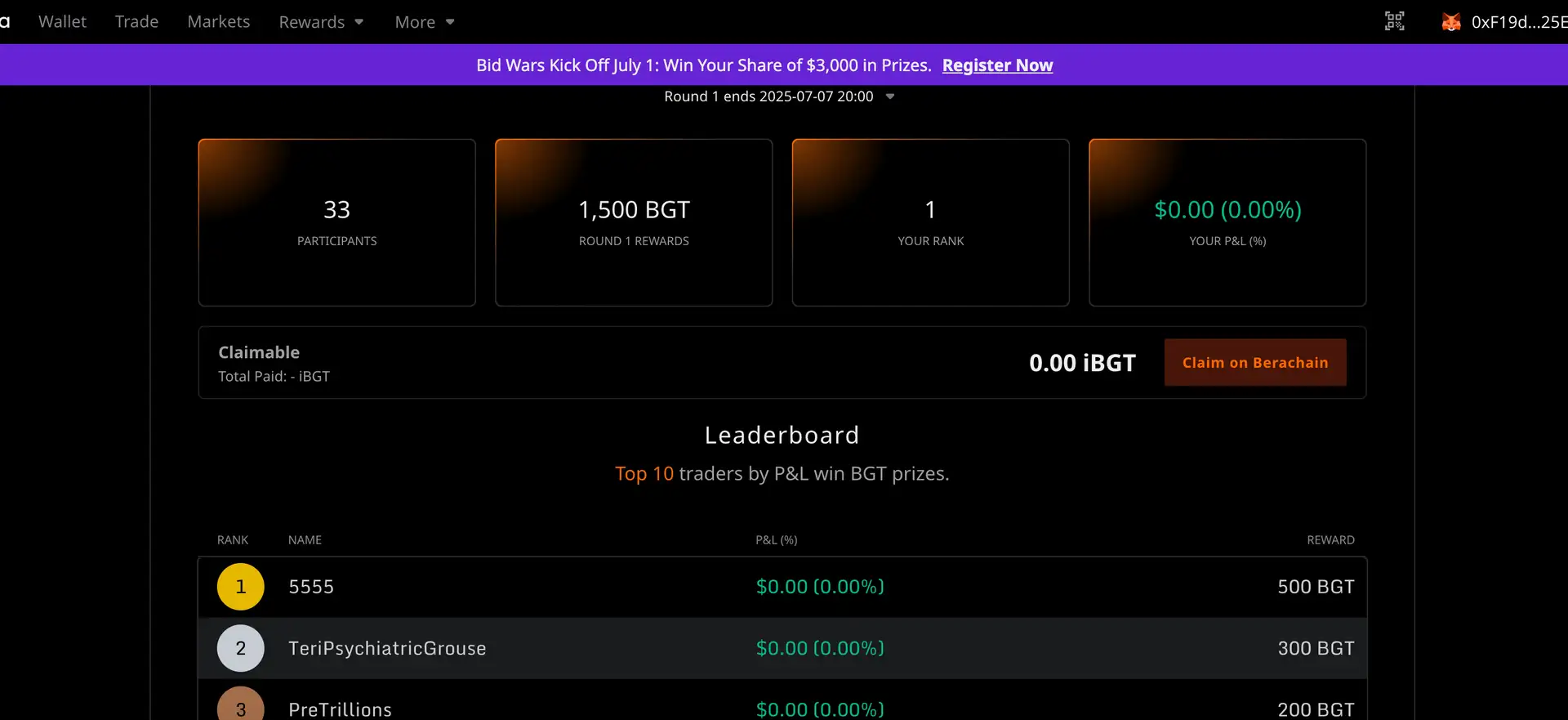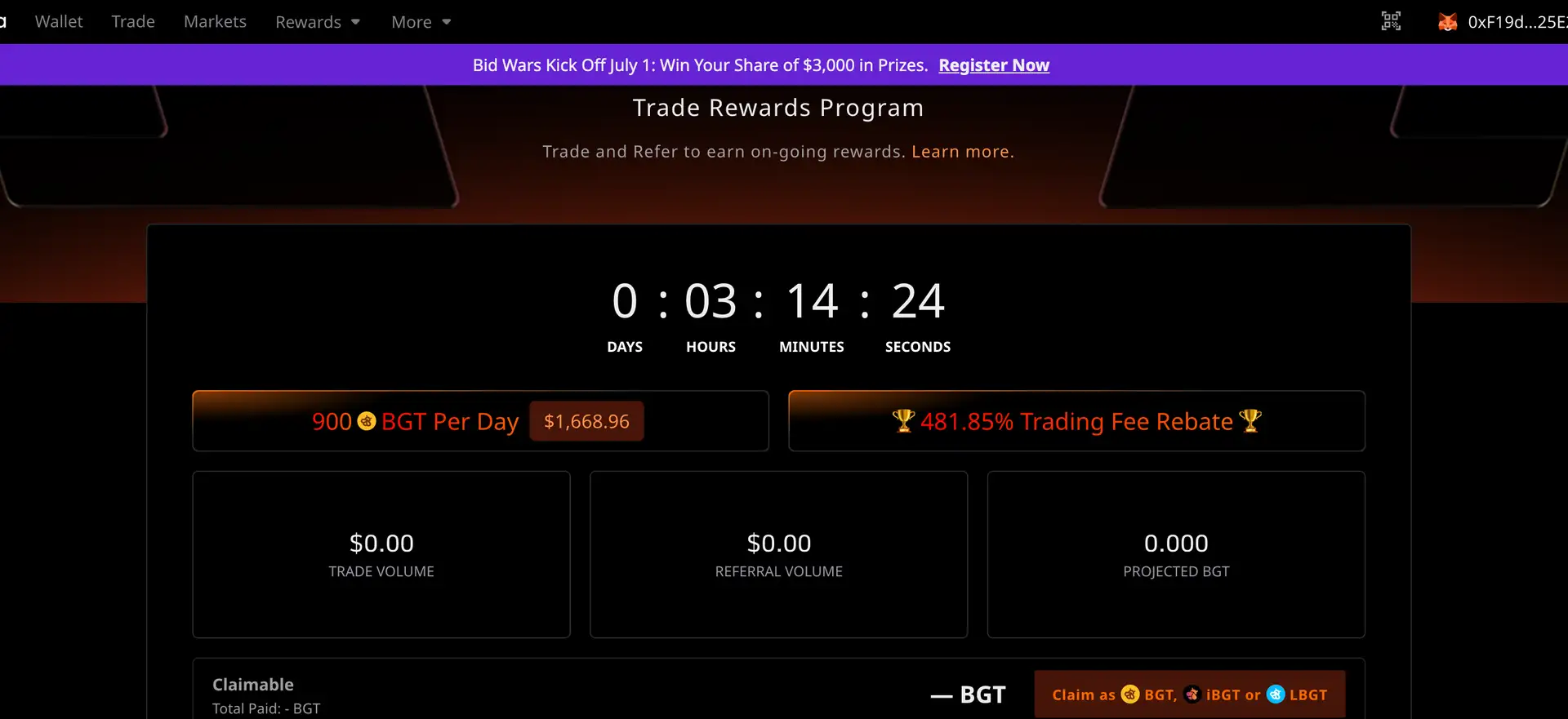- Track Rewards: Earn BGT emissions and Kuma Points for trading and referring others. Visit the Rewards page to monitor and claim.