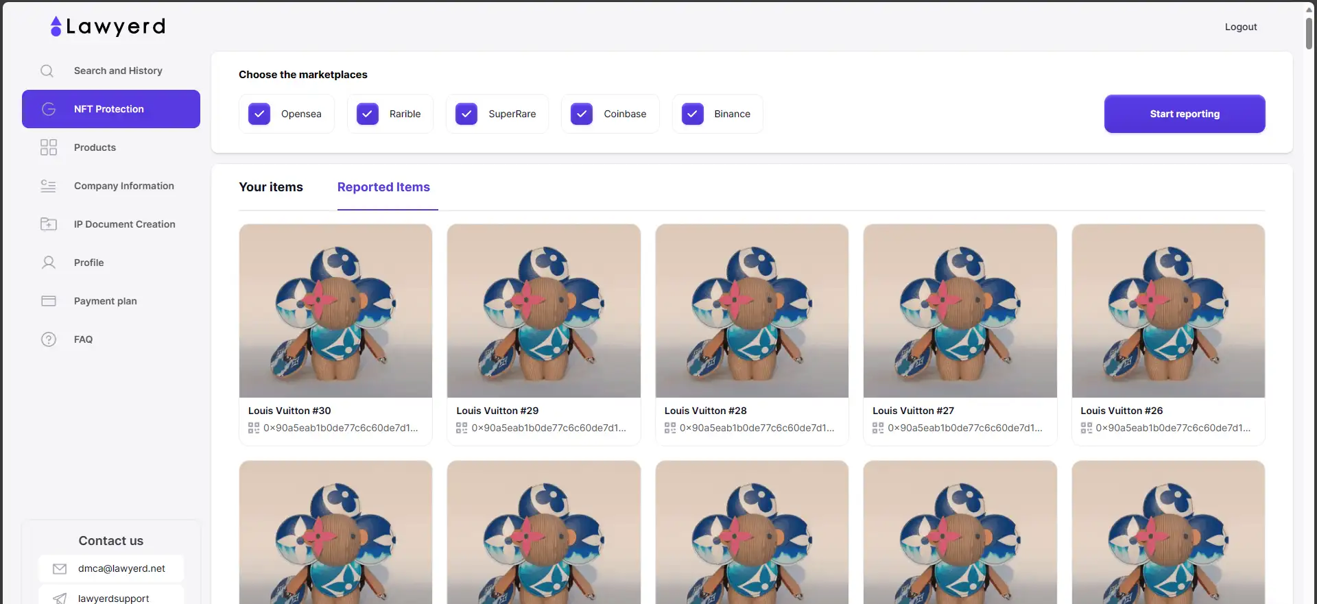 - Marketplace Integration: Lawyerd works seamlessly with major NFT marketplaces, including OpenSea, Rarible, SuperRare, Binance, and Coinbase, offering extensive coverage and protection for a wide range of digital assets.