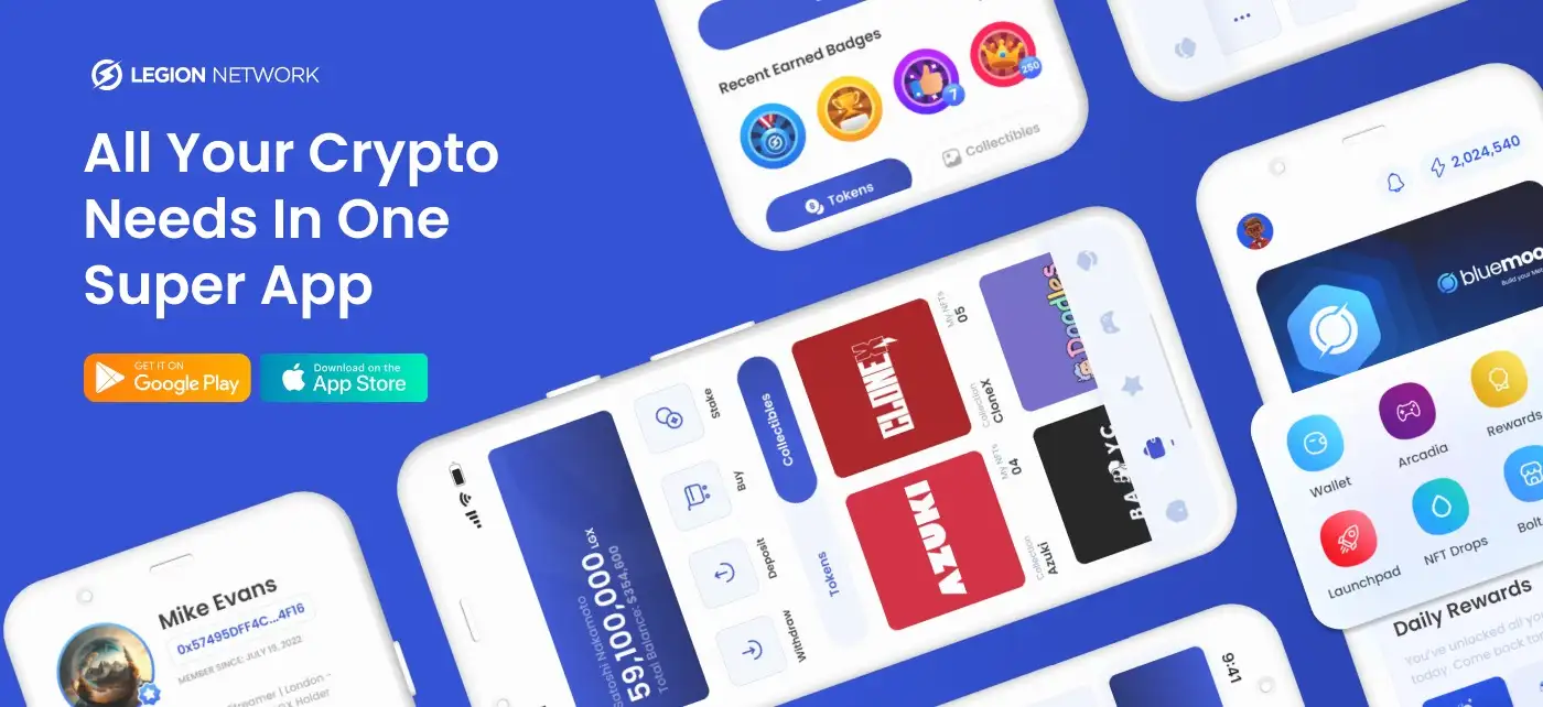 Legion Network is designed to unify multiple blockchain services into a single platform, providing users with a comprehensive experience that spans decentralized finance (DeFi), NFTs, gaming, and education. By integrating these services, the platform offers a "Super App" experience that aims to cater to a wide audience, from crypto enthusiasts to beginners. The mission of Legion app is to simplify blockchain adoption while empowering users through rewards, education, and community participation. With a user-friendly interface and multiple offerings under one roof, the platform seeks to stand out in an increasingly competitive market.