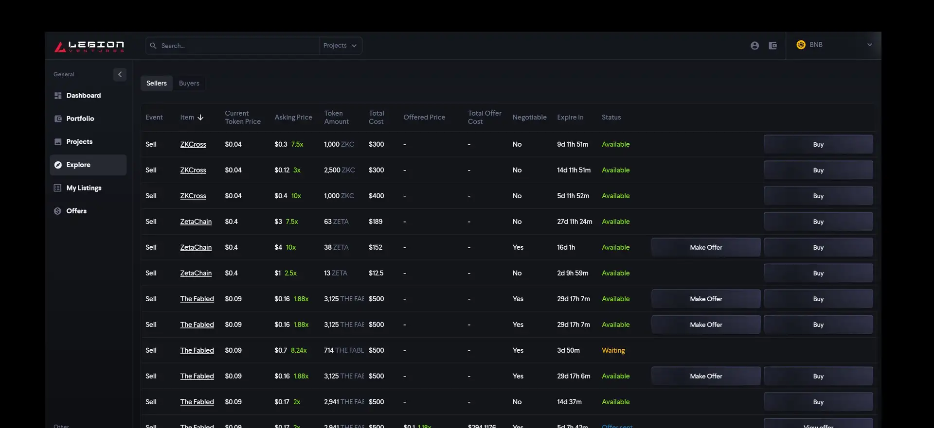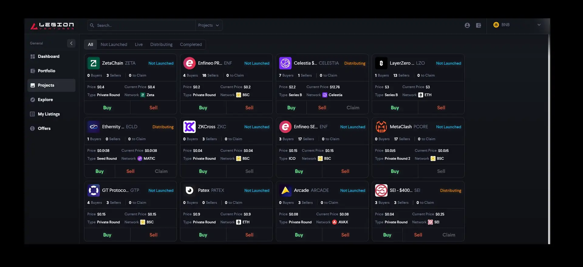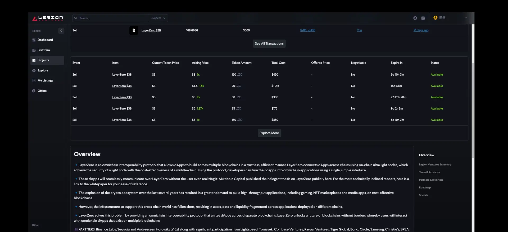 - Explore Investment Opportunities: As a LEGION holder, you can now access exclusive Web3 investment projects available only to the platform's community. Browse the available projects, research their potential, and make your investment decisions.