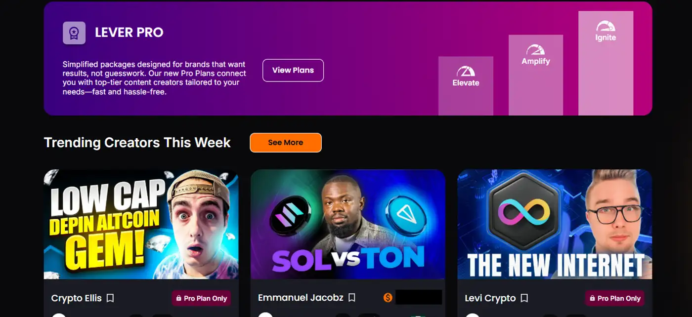 Beyond matching services, Lever.io offers a "white glove" experience through its Pro Plans. This managed service includes campaign strategy, influencer selection, communication management, and performance optimization — handled by a team of former top-tier Web3 marketers. With a native chat system, escrowed payments, and milestone-driven workflows, Lever.io ensures transparency and success throughout the marketing lifecycle.