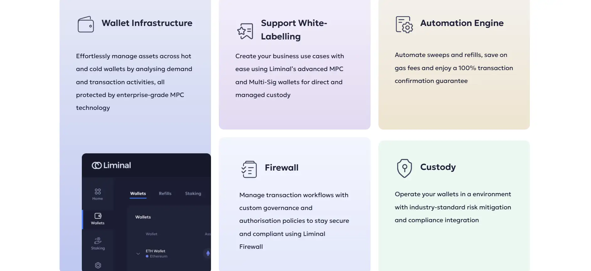Liminal Custody offers institutions a unique combination of security, automation, and compliance: