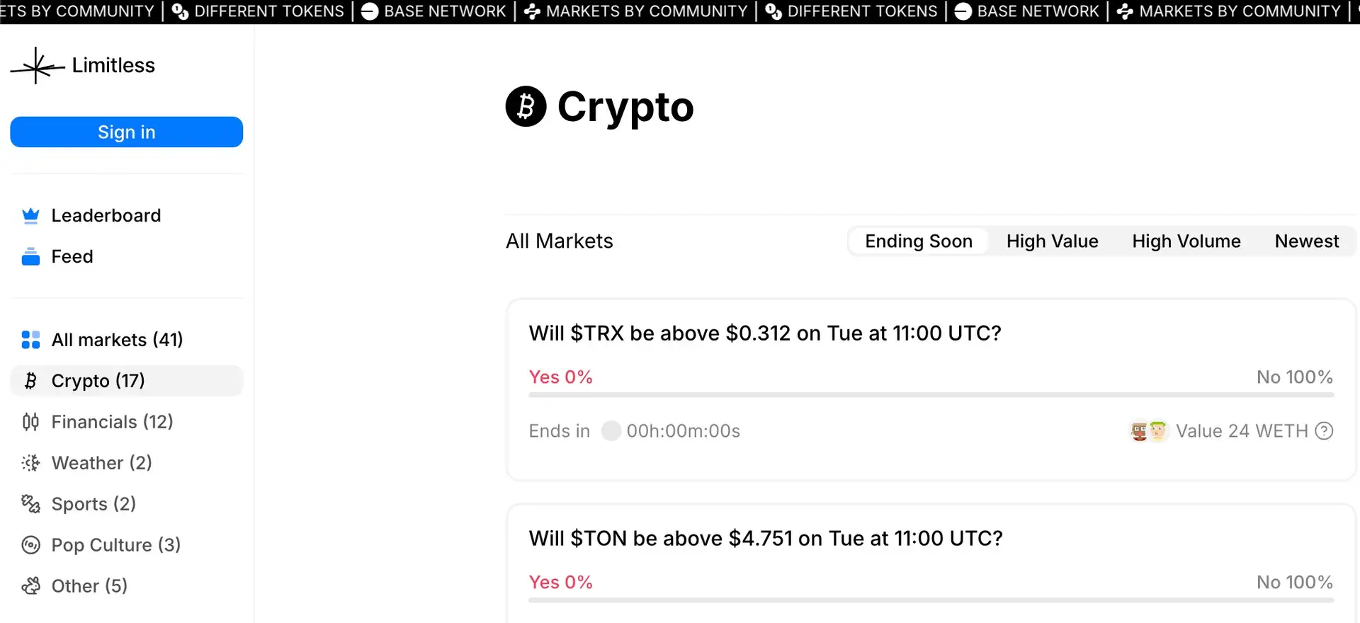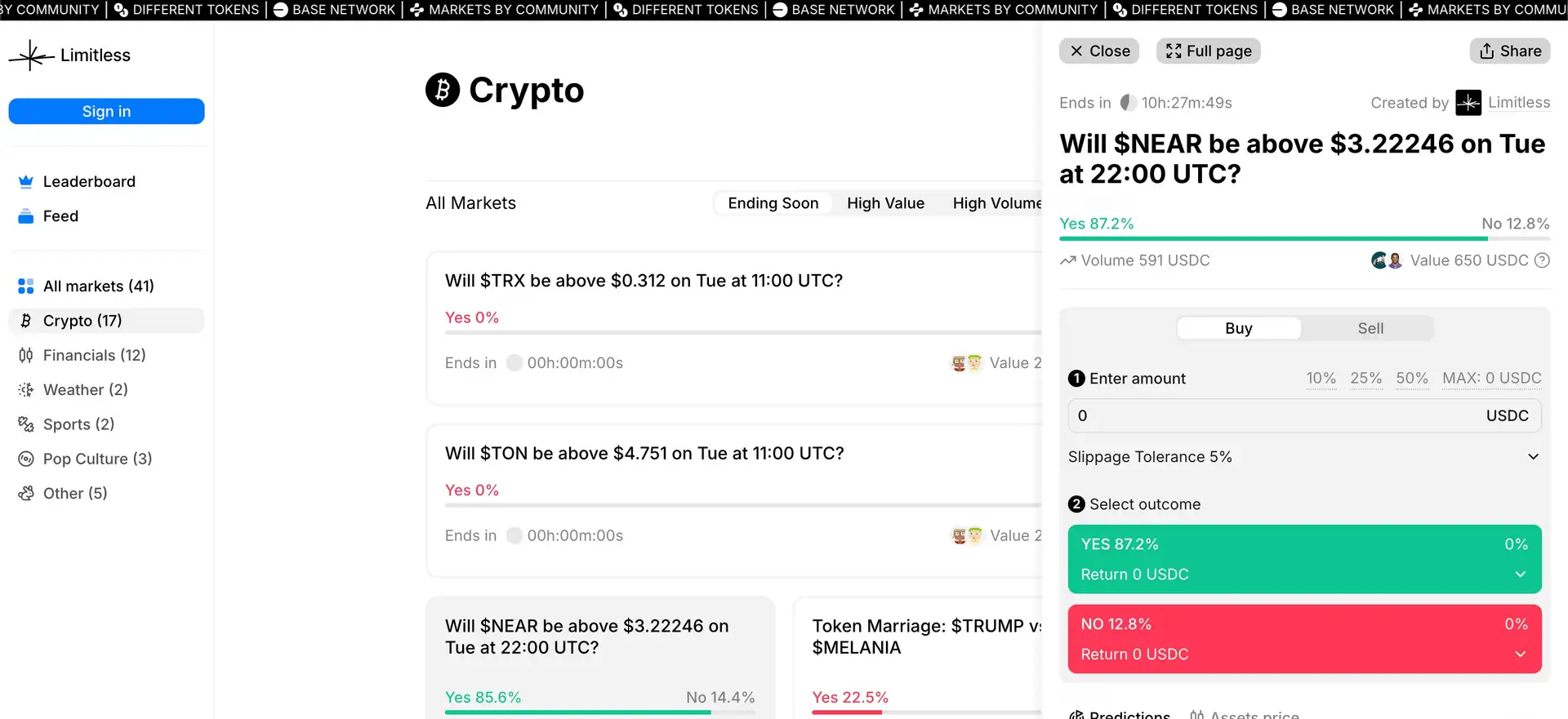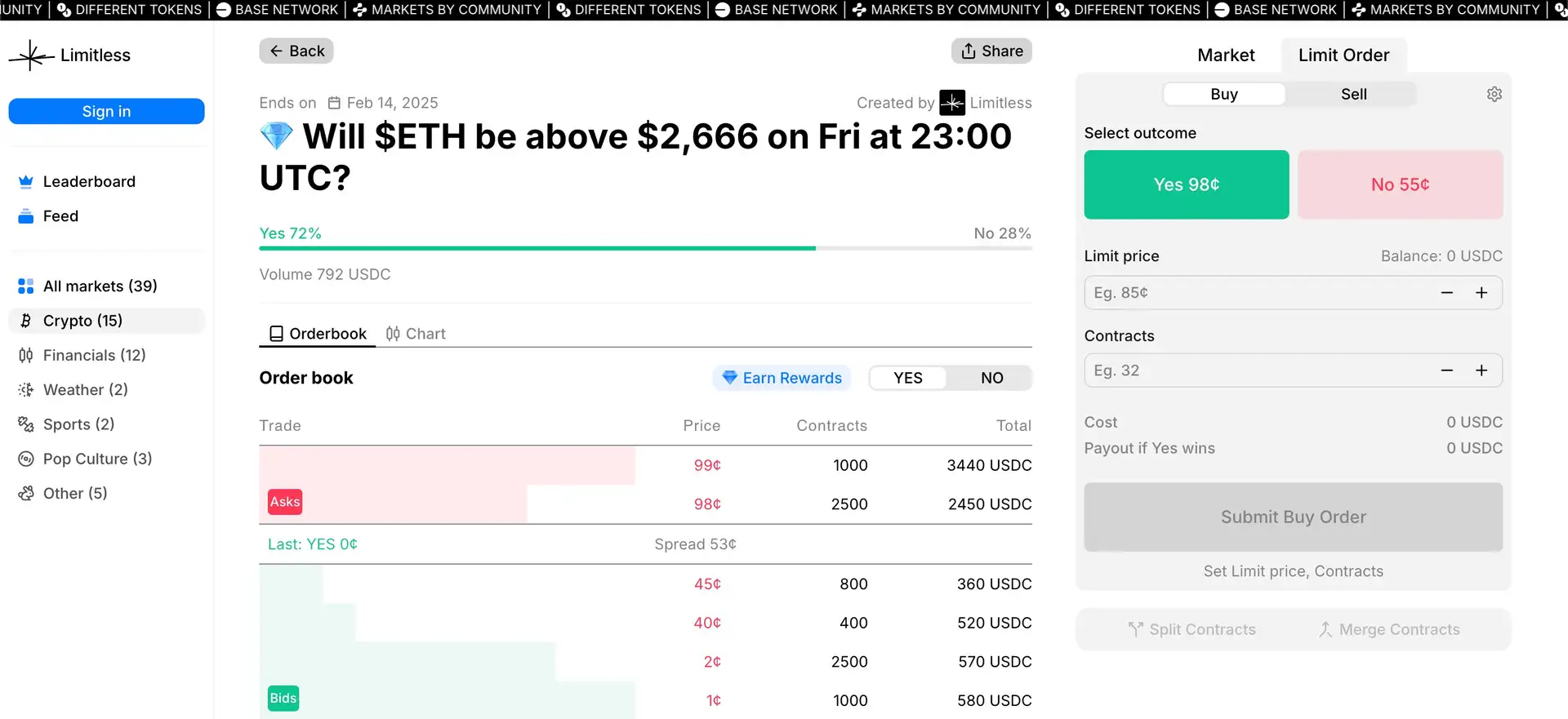 - Visit the Platform: Explore active markets on the Limitless Market website.