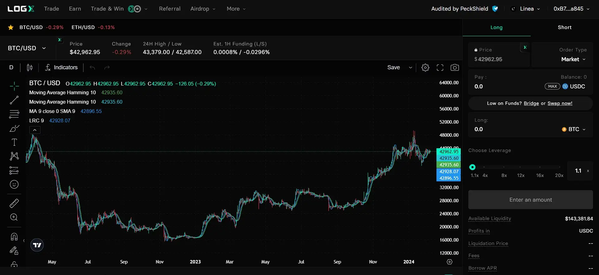 - Start Trading: Begin trading perpetual contracts with low latency and high efficiency. Utilize the available tools and strategies to enhance your trading performance. LogX offers a variety of order types, including limit and market orders, to cater to different trading styles.