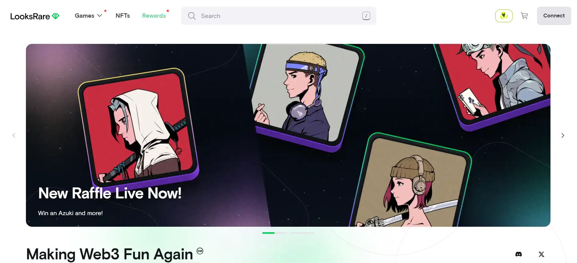 Launched in January 2022, LooksRare supports all ERC-721 and ERC-1155 tokens, ensuring compatibility with nearly every NFT collection on Ethereum. The platform also emphasizes fairness by offering royalties to creators on every secondary sale, ensuring sustainable earnings. With its competitive 2% transaction fee and reward-driven ecosystem, LooksRare has emerged as a major competitor to traditional marketplaces like OpenSea and Rarible.