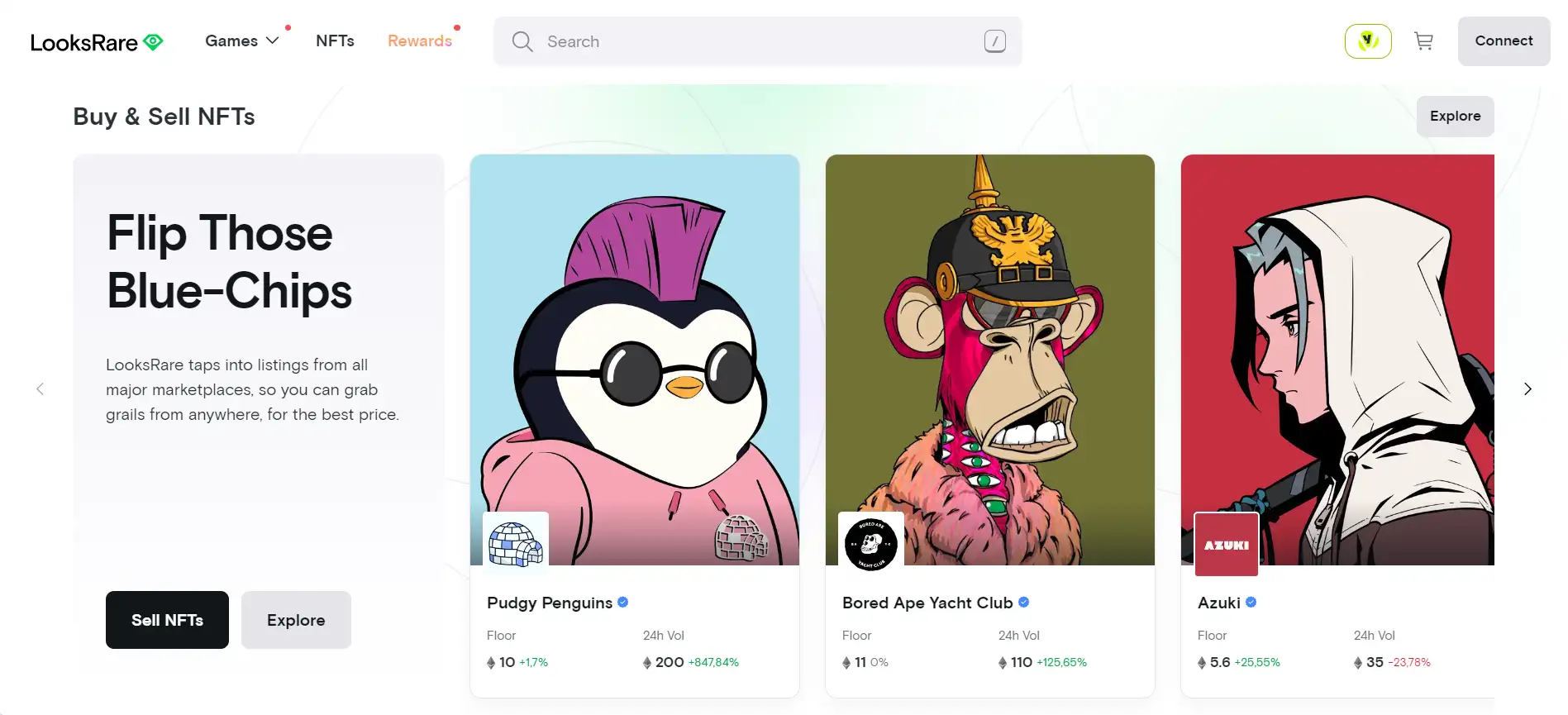 - Trading Rewards System: Users receive LOOKS token rewards for buying and selling eligible NFTs, making trading more profitable.