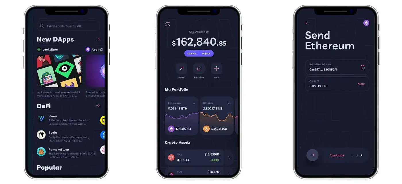 - Multi-Chain Support: The wallet supports multiple blockchain networks, including Ethereum, Binance Smart Chain, and Polygon, allowing users to manage a diverse range of cryptocurrencies in one place.