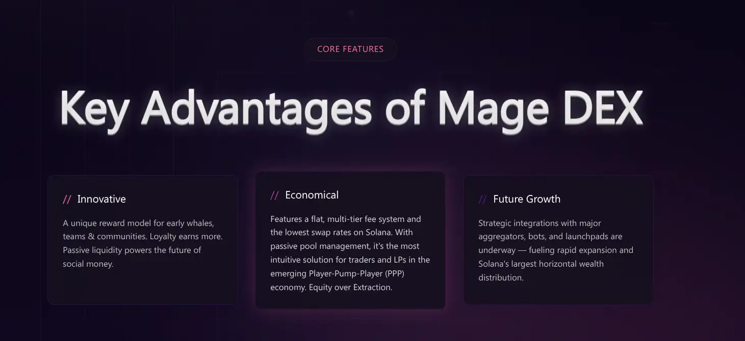 Mage DEX provides numerous benefits and features that make it a standout project in the Solana DeFi landscape: