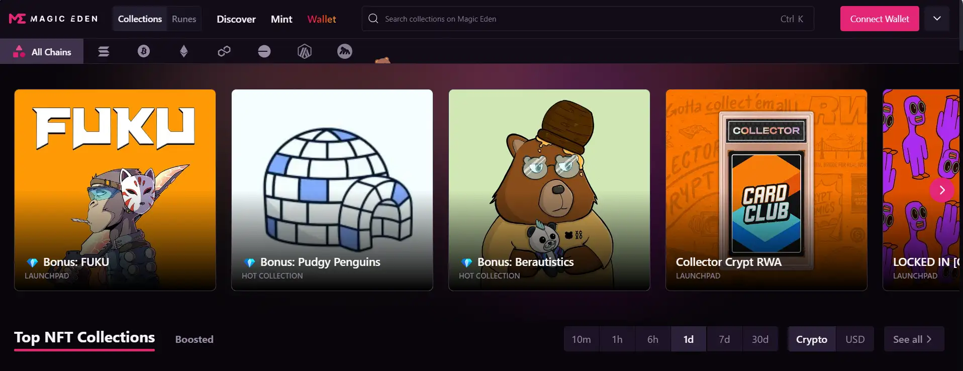 One of the platform’s defining features is its multi-chain functionality. Initially focused on Solana NFTs, Magic Eden now supports Ethereum, Polygon, and Bitcoin Ordinals, allowing users to trade assets across different ecosystems. This interoperability ensures that users can engage with a wide range of digital collectibles without needing to switch between platforms.
