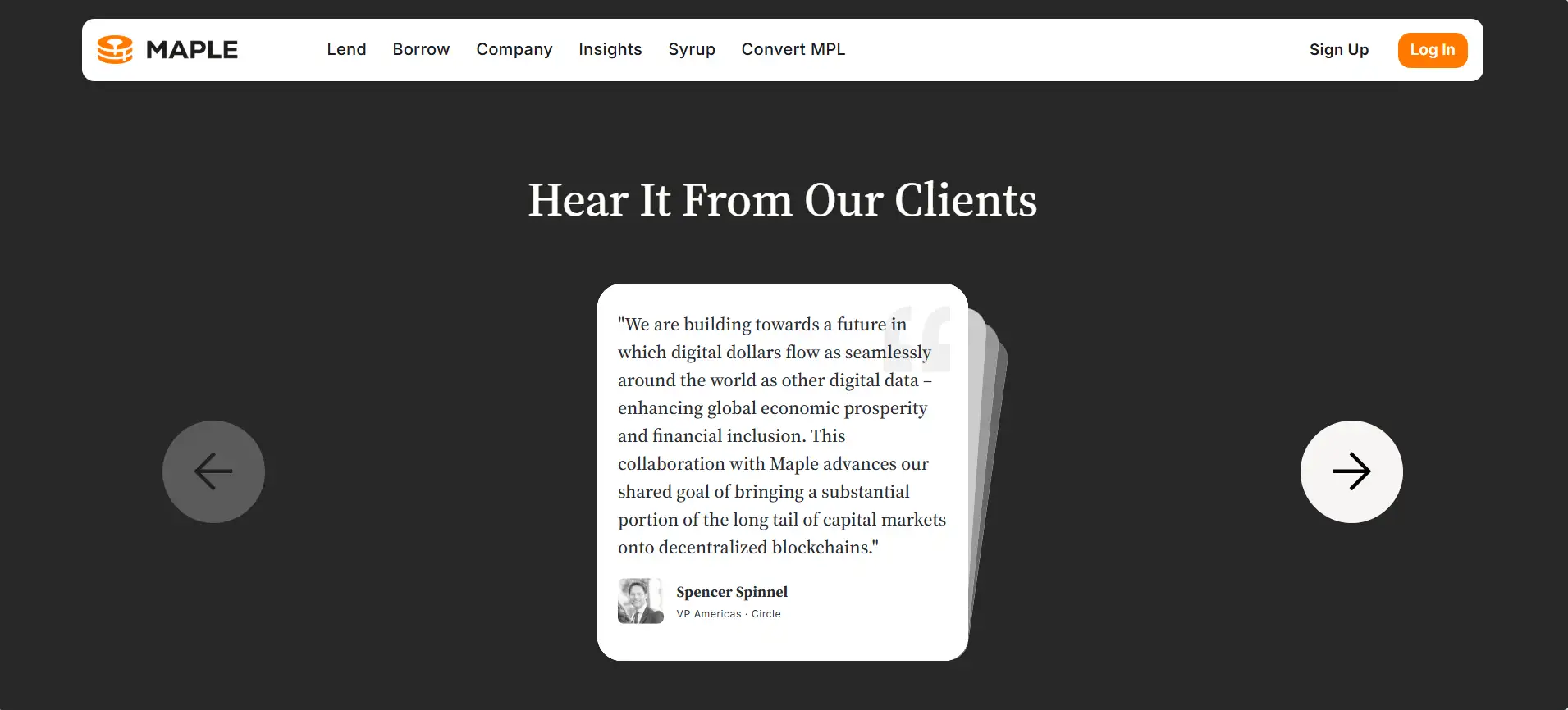 Founded in 2019 by former bankers and credit investment professionals, Maple serves as the bridge between traditional finance and decentralized finance. It enables institutions to lend and borrow digital assets with fixed-rate terms and institution-grade risk assessment. Through its dual product lines — Maple Institutional and the DeFi-native Syrup.fi — the platform empowers users across the financial spectrum with secure, transparent, and high-yield lending solutions.