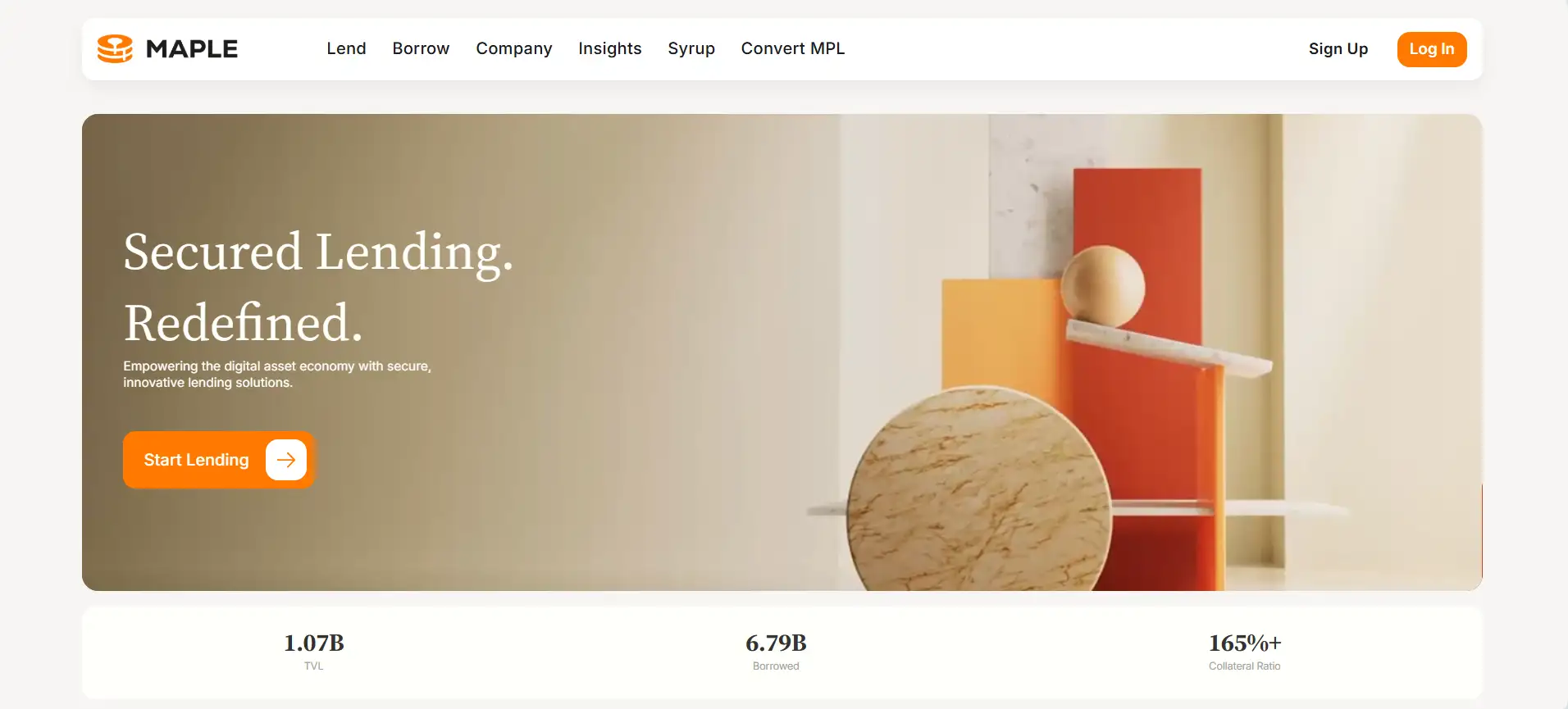 Maple is a secure, curated digital lending platform that connects institutional capital to overcollateralized borrowing opportunities in the crypto economy. Built on smart contracts and powered by blockchain technology, Maple provides verified lenders access to lending pools offering stable, fixed-yield returns. Since launch, the protocol has facilitated over $6.7 billion in loans and maintains a 165%+ collateral ratio, demonstrating the platform's commitment to safety and sustainability.