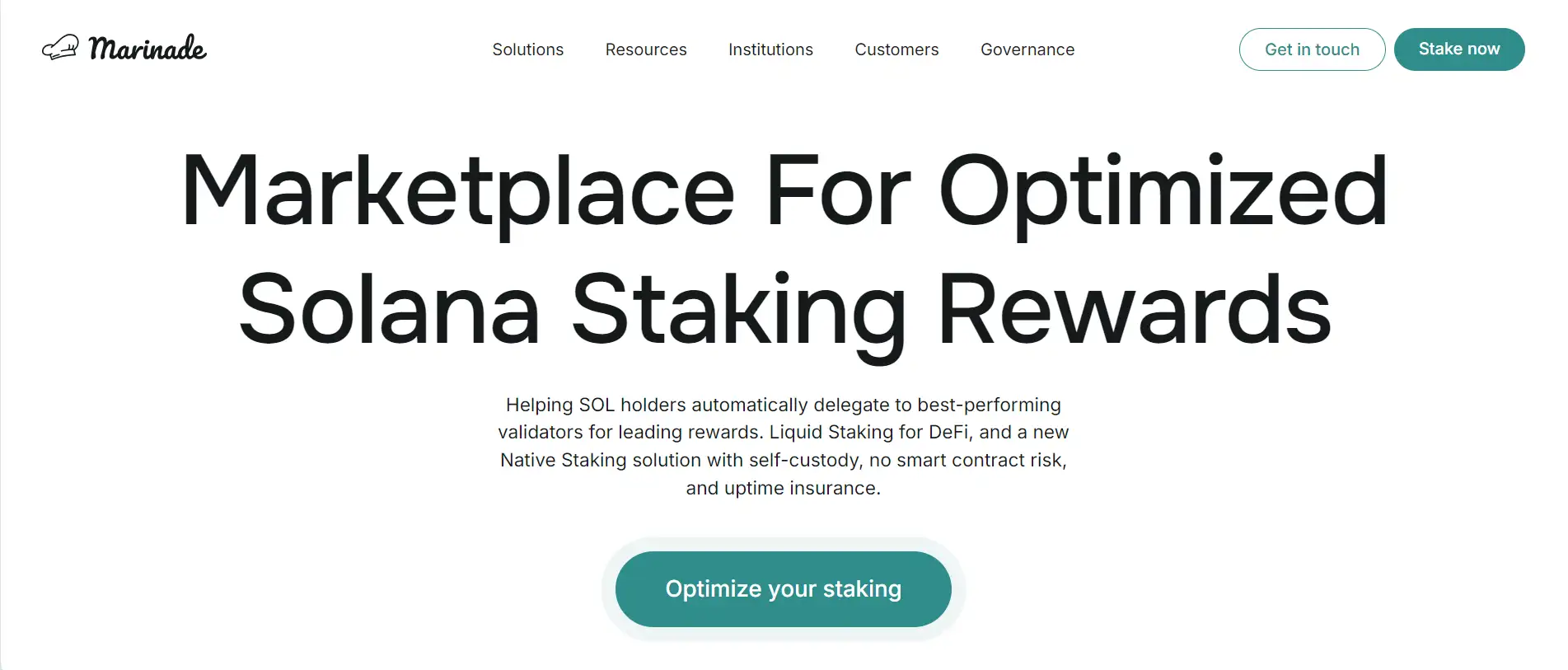 - Native Staking: Users can stake their SOL directly with Marinade, benefiting from automatic delegation to high-quality validators without receiving a liquid staking token.