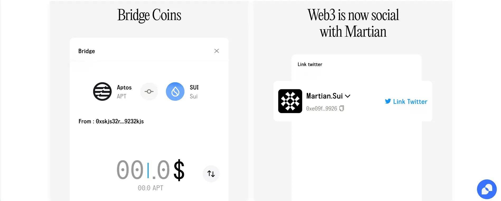 The wallet is currently available as a browser extension for Chrome, Edge, Brave, and others, and it enables users to send, receive, and manage Aptos ($APT) and Sui ($SUI) assets. It supports social transactions—users can link their Twitter accounts to send crypto directly through a Tweet command. Additionally, Martian allows users to mint, view, and transfer NFTs natively within the wallet interface.