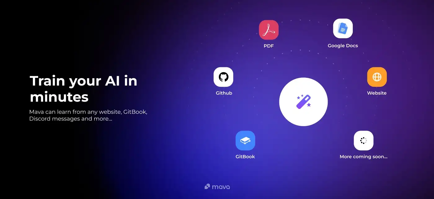 To train Mava's AI, you can upload your existing support content from platforms like GitHub or Google Docs. This helps the AI learn the specific queries and responses relevant to your community, enhancing its ability to provide accurate and efficient support.
