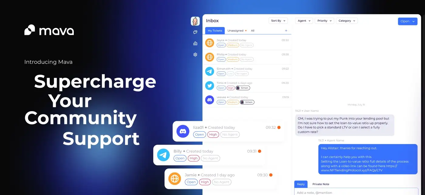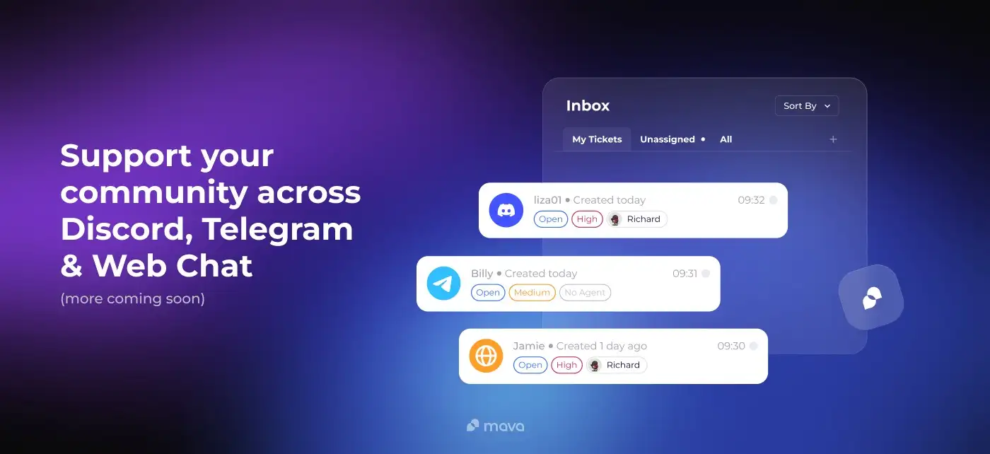 - Begin Support Operations: Start managing your community support efficiently through Mava’s unified inbox and AI tools. Use the dashboard to monitor support activity, manage tickets, and engage with your community members.