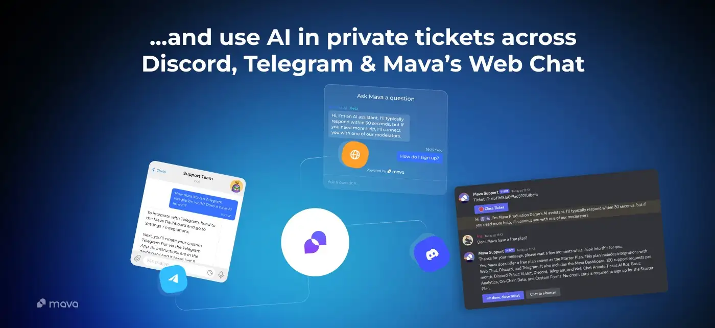 Mava seamlessly connects with platforms like Discord and Telegram by using APIs to synchronize data and manage interactions from a unified dashboard. This integration ensures that all community queries are handled efficiently, regardless of the platform they originate from.