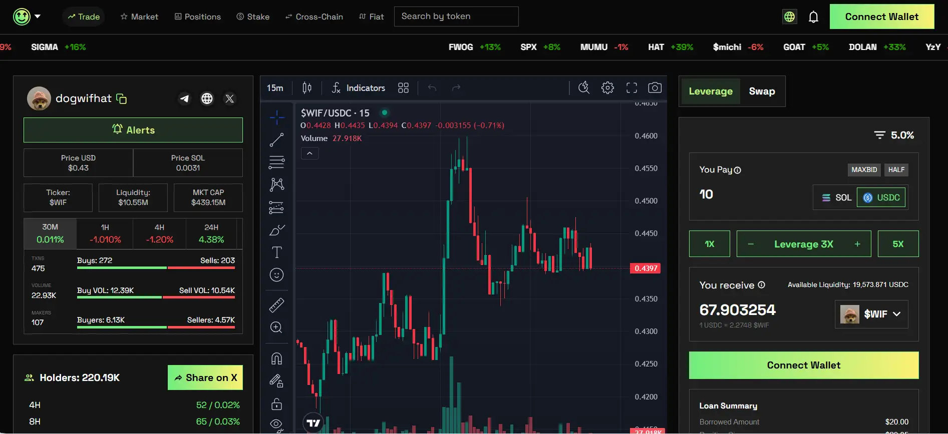 - Trading: Navigate to the trading screen, select your token pair, set leverage, and execute the trade. Trades are routed via Jupiter to maximize efficiency.
