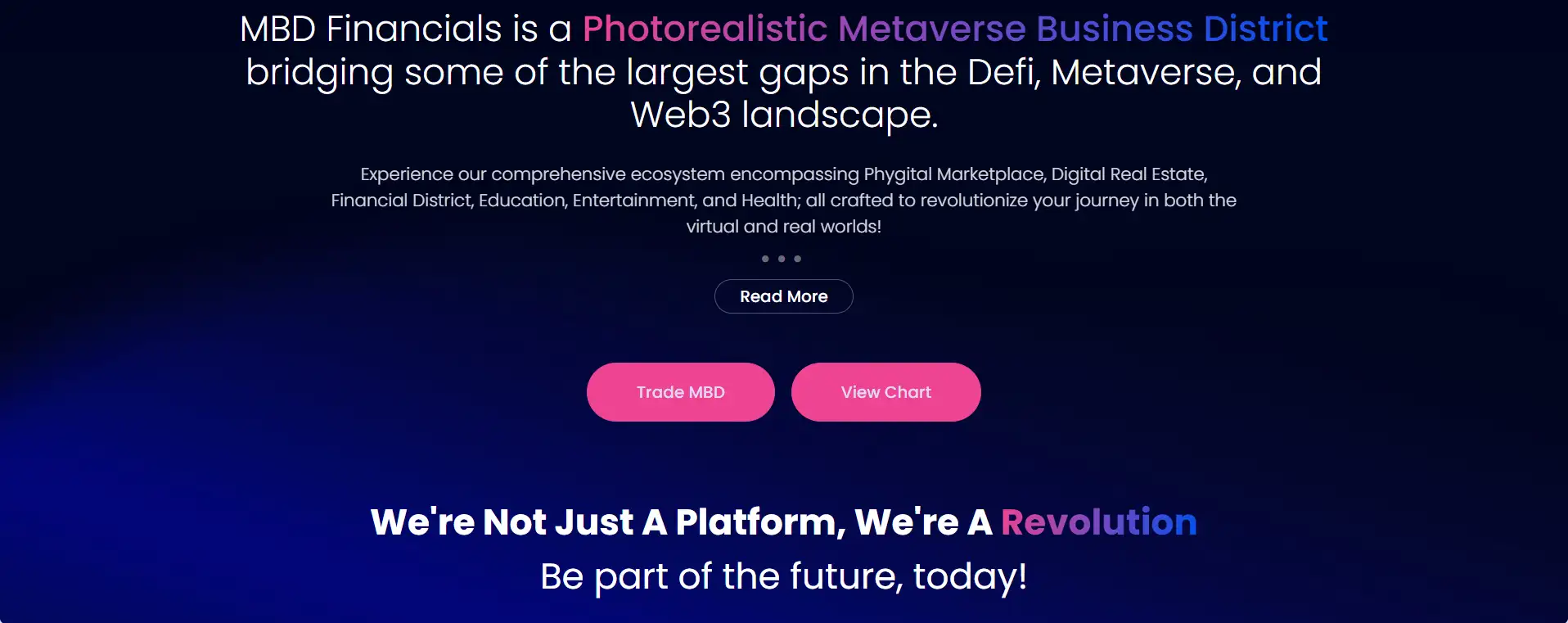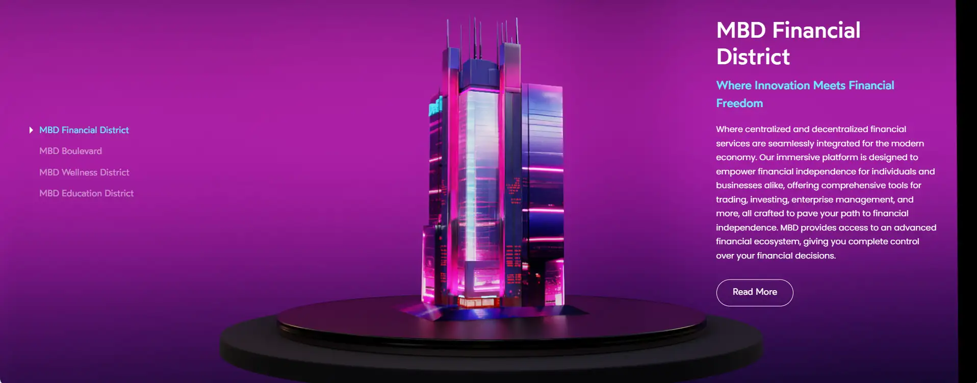 MBD Financials is a transformative platform redefining the intersection of decentralized finance, mixed reality, and digital identity. Positioned as a Photorealistic Metaverse Business District, it offers a high-fidelity virtual world powered by Unreal Engine 5, where users can engage in real-world economic activities, education, and immersive social experiences. By bridging the physical and virtual realms, MBD Financials is building a next-gen infrastructure that combines digital innovation with human-centered empowerment.