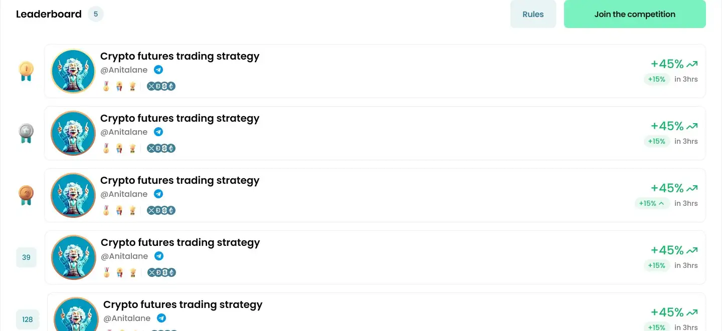 - Trading Competitions: Users can participate in competitive trading environments to test and refine their strategies, gaining recognition and attracting followers.