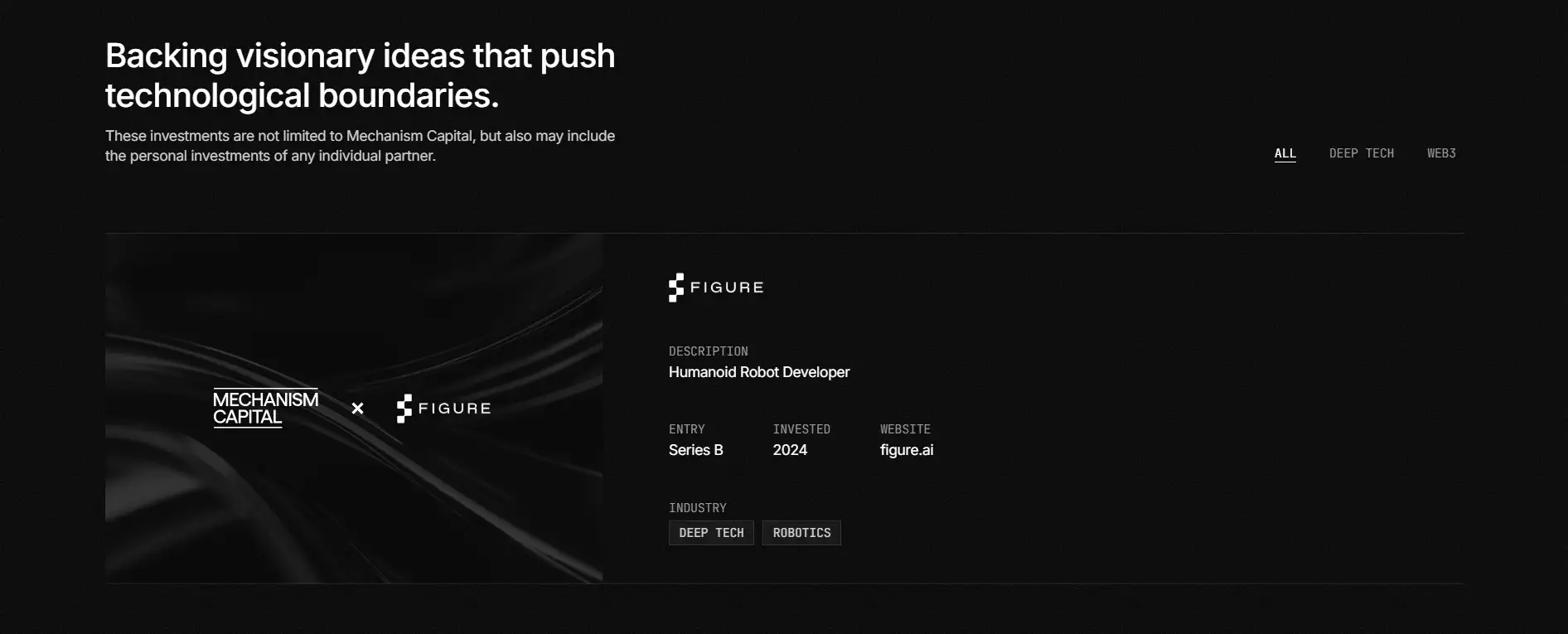 - Conviction at the Frontier: The firm doesn’t follow hype—it creates it. Mechanism Capital invests early in bold, unconventional ideas that others often overlook, giving its portfolio a first-mover advantage.
