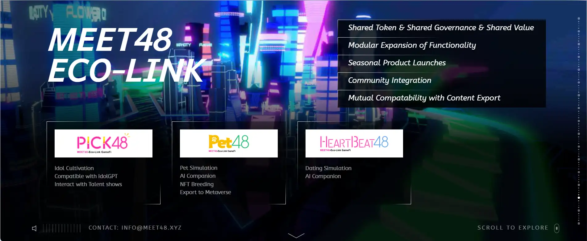 - Virtual Events & Activities: Users can participate in virtual concerts, conferences, and other engaging activities within the Meet48 metaverse.