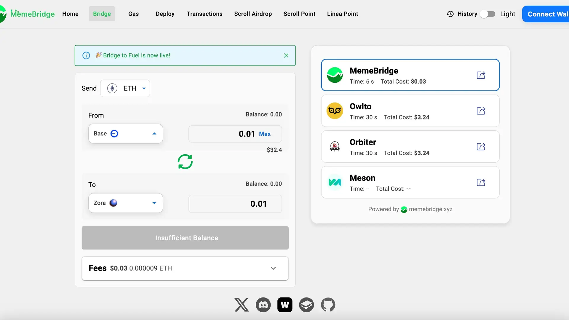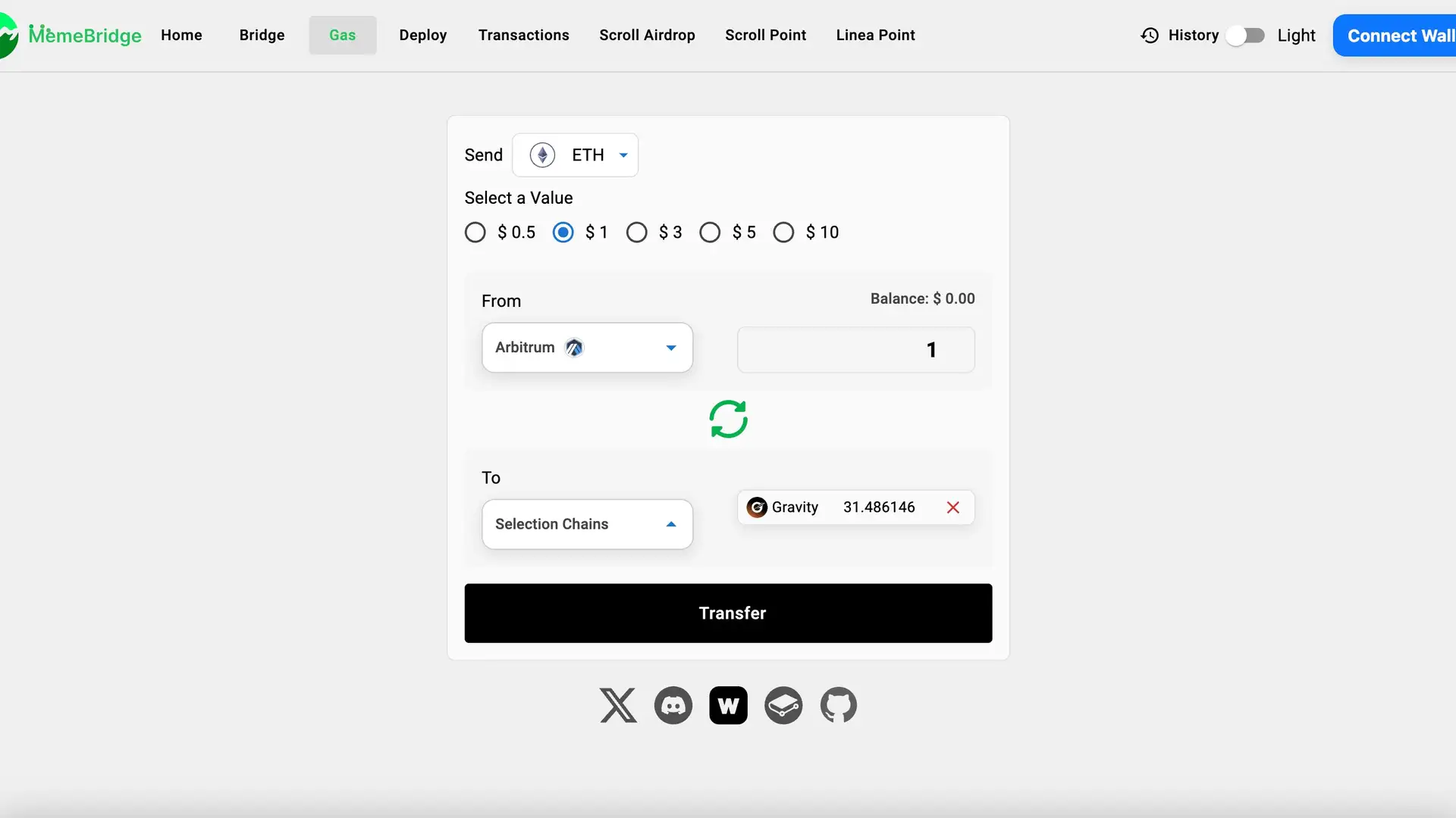 - Seamless Cross-Chain Transfers: Meme Bridge simplifies the process of moving digital assets between blockchain networks. Users can bridge their assets between supported chains like zkSync, Linea, Arbitrum, and Optimism in just a few clicks.