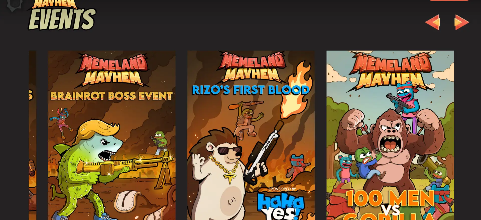 Memeland Mayhem fuses viral internet culture with Web3 gaming by transforming iconic memes into battle avatars in a top-down shooter. Characters like Doge, Pepe, and Giga Chad become interactive fighters, each stylized with unique animations. Through weekly updates, the game continuously introduces trending memes and cross-IP collabs, allowing users to literally play with culture while earning rewards. Learn more on the official site: mmm.fun.