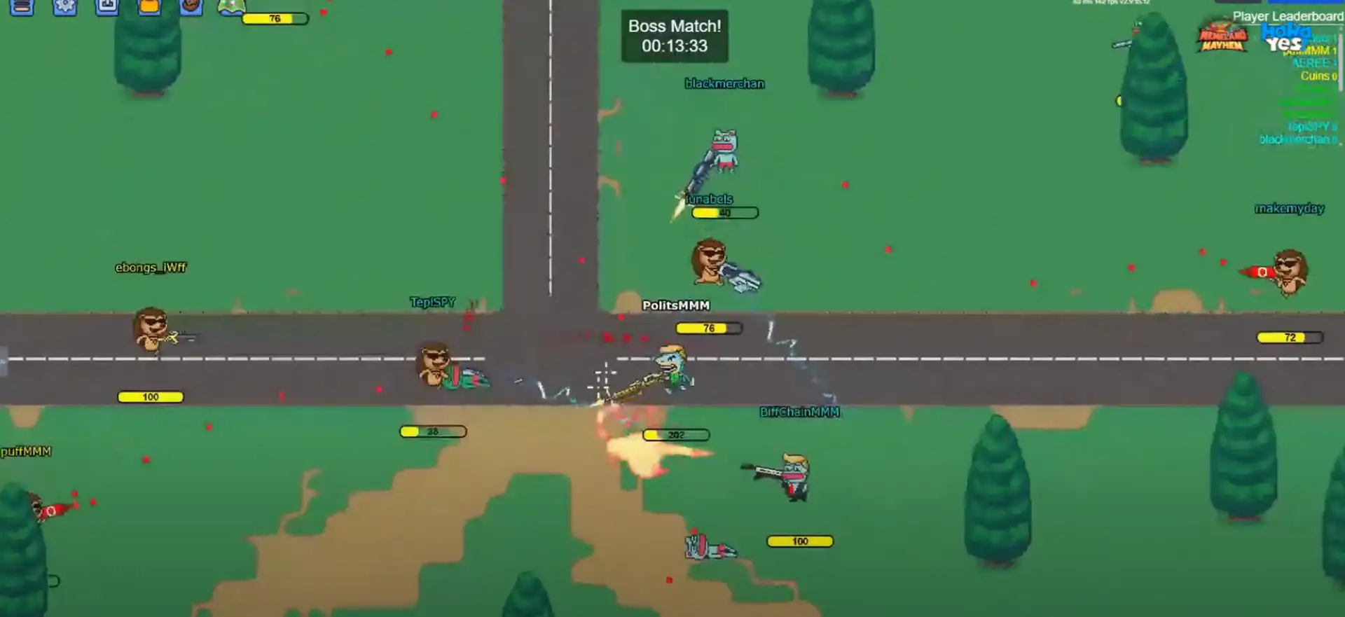 Memeland Mayhem offers a top-down multiplayer shooter experience where players battle it out using meme-inspired avatars across fast-paced maps: