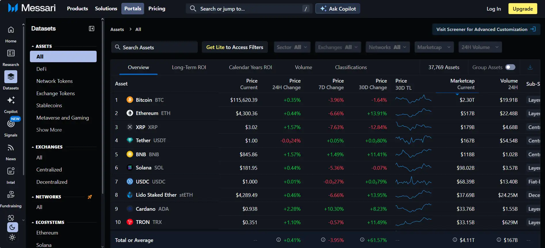 - Use the Screener: Filter and sort assets by market cap, sector, performance, and tokenomics to build a data-driven portfolio view.