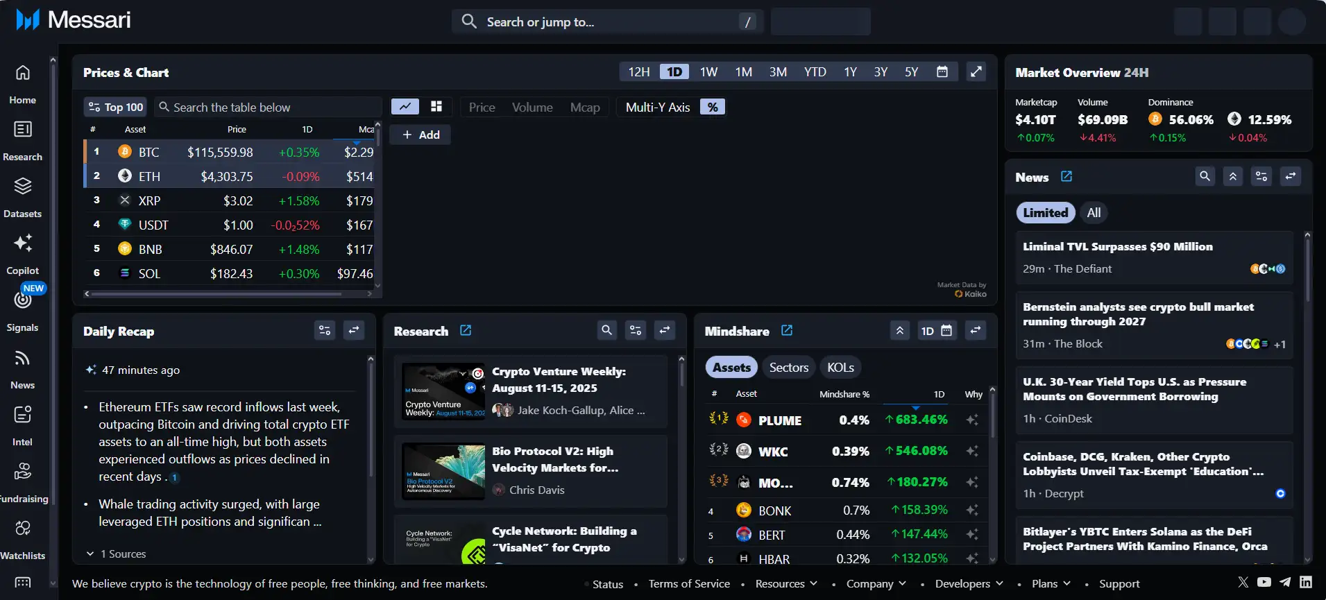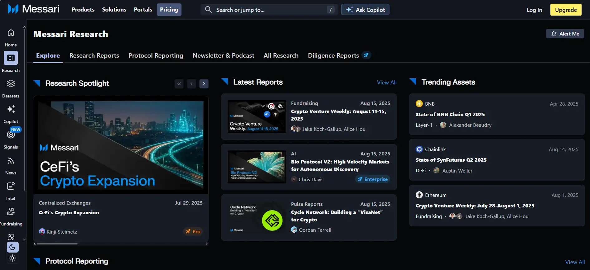 - Institutional-Grade Research: Deep dive reports, industry analysis, and protocol-level due diligence powered by a professional research team.