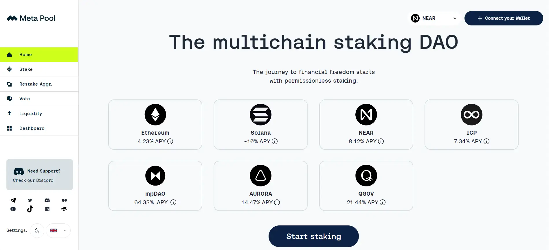 - Visit the official website: Go to Meta Pool to access the staking platform.