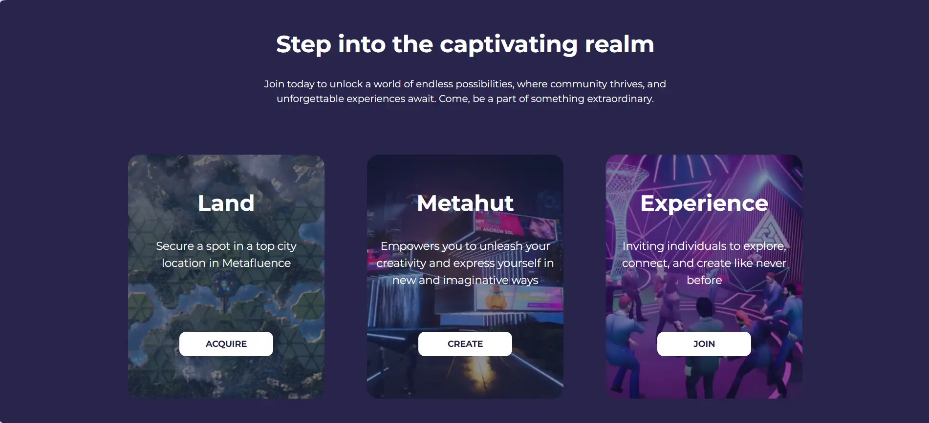 - Explore & Engage: Walk around Metafluence City, participate in virtual events, and grow your audience.