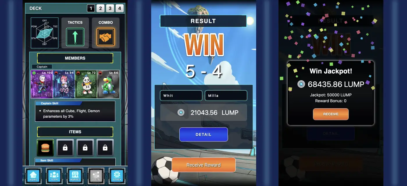The in-game economy is driven by the Utility Token $LUMP, which players can earn through various activities such as winning matches, completing challenges, and participating in events. $LUMP tokens can be used to purchase new players, upgrade facilities, and unlock exclusive content. The game's economy is designed to be player-driven, with supply and demand dynamics influencing the value of assets.