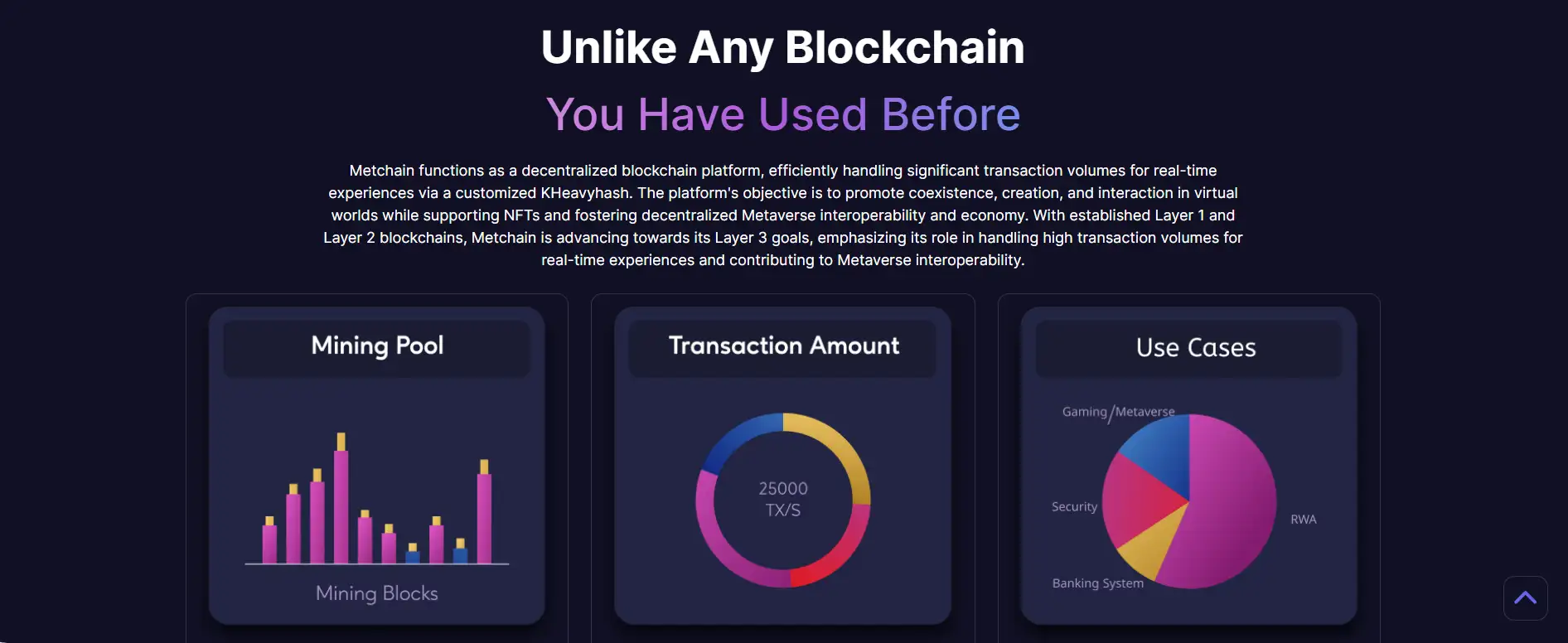 Metchain is a next-generation blockchain platform dedicated to empowering developers, creators, and users in the emerging Web3 and Metaverse ecosystem. Designed as a highly scalable and efficient chain, Metchain focuses on real-time interactions, high-speed transactions, and seamless cross-chain functionality. Its ecosystem blends decentralized finance (DeFi), NFT utility, and custom virtual environments, all while maintaining secure and user-first architecture.