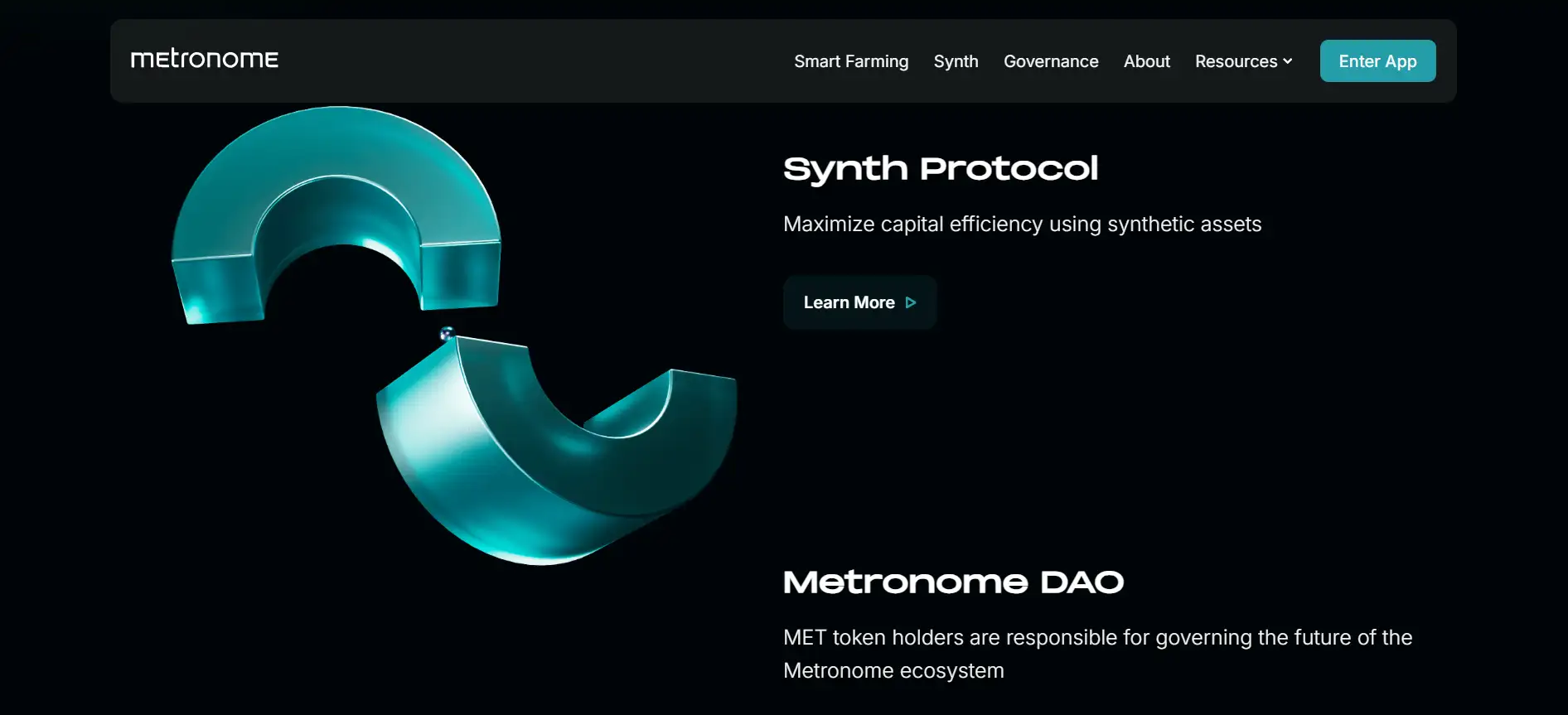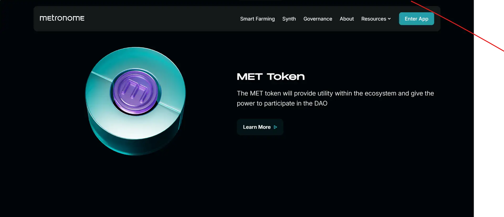 - Step 1 – Visit the dApp: Head to Metronome Synth and click “Enter App” to access the platform.