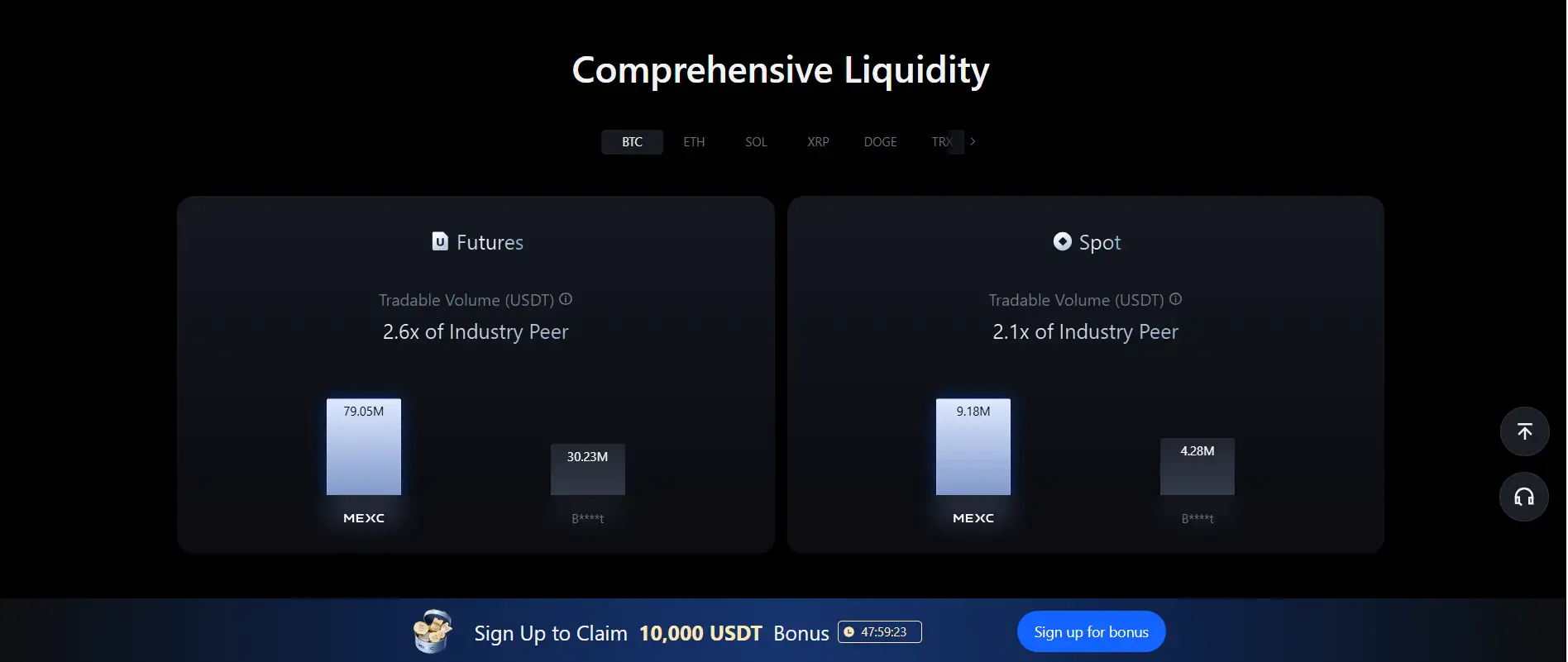 MEXC ensures deep liquidity by leveraging a vast global user base, strategic liquidity partnerships, and a high-frequency trade engine capable of executing up to 1.4 million trades per second. The platform hosts over 2,700 spot pairs and 1,300+ futures pairs with competitive spreads and strong volume. Visit MEXC to view real-time liquidity stats.