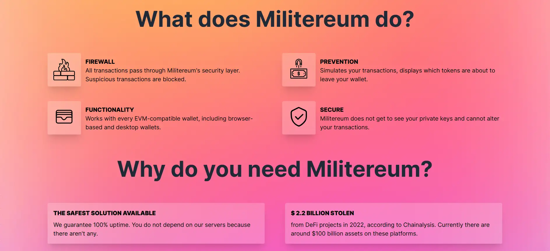 Militereum provides a wide range of benefits and features that make it an essential addition to any Web3 security stack: