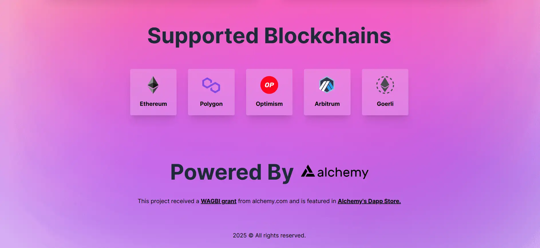 - Trusted and Backed: Recipient of the WAGBI grant from Alchemy, and listed on the official Alchemy Dapp Store.
