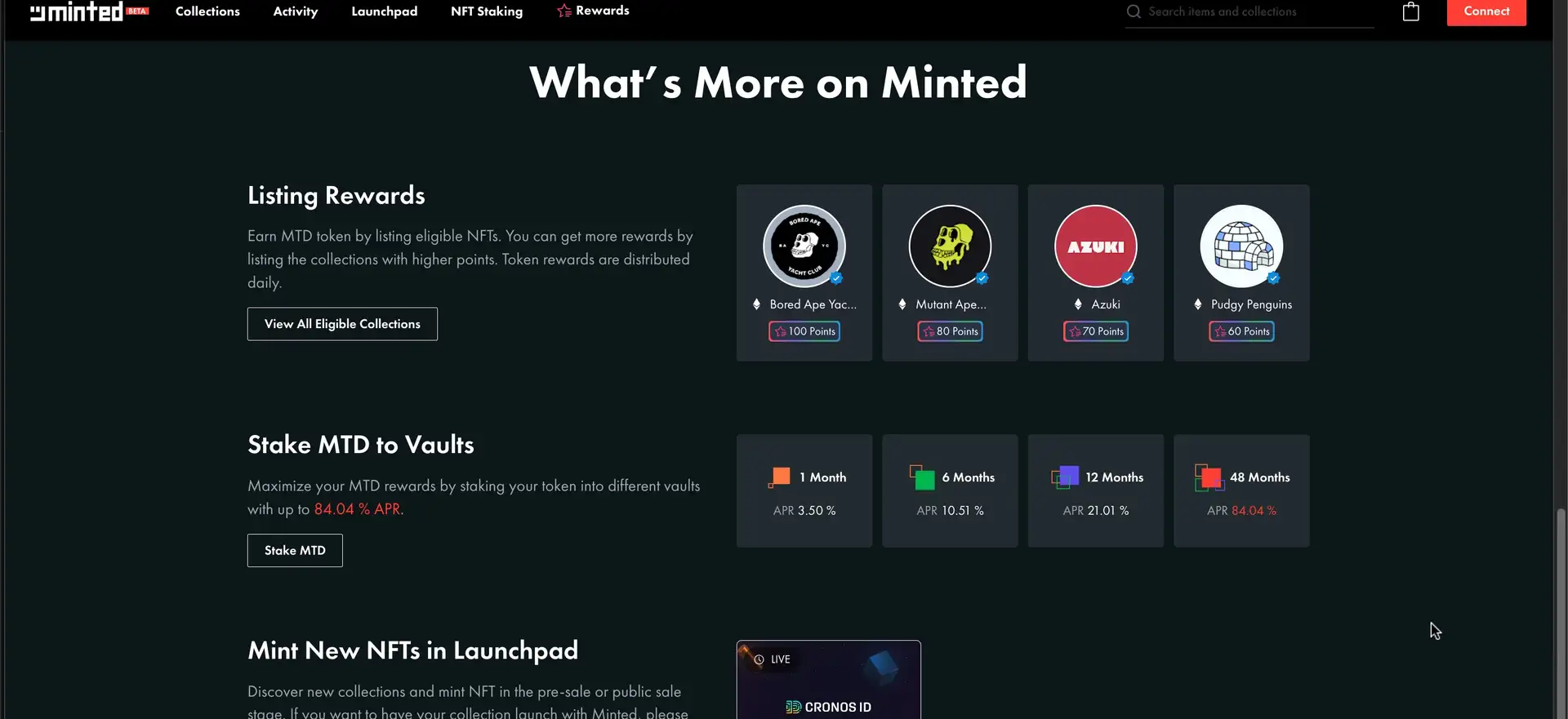 - Cross-Chain Compatibility: Minted Network supports both Ethereum and Cronos, offering users the flexibility to transact and stake across multiple blockchains.