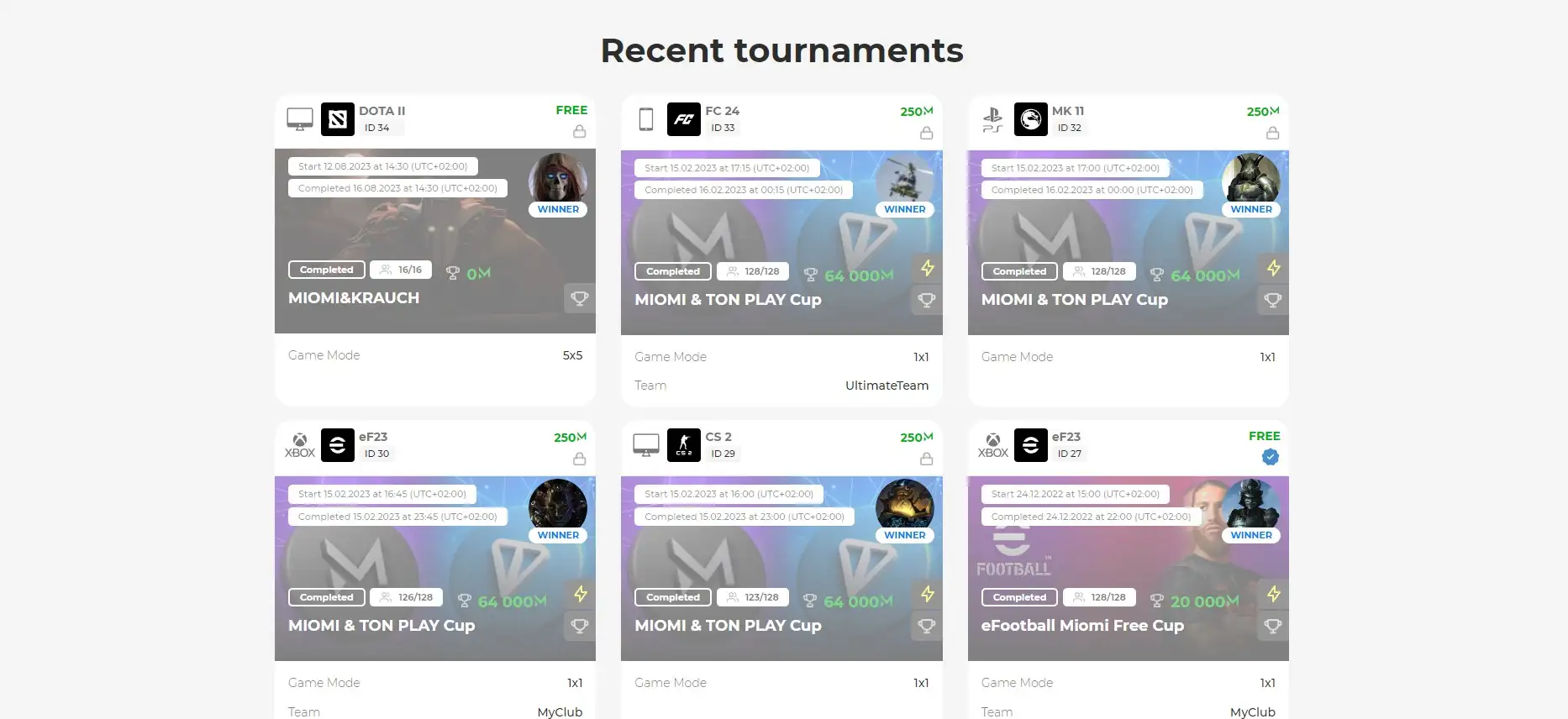 - Diverse Game Selection: Miomi Game supports an extensive list of popular eSports titles, ensuring that players from different gaming backgrounds can find their niche. Games like CS:GO, FIFA 22, WOT, DOTA 2, and others are integrated into the platform, allowing for a wide variety of tournament types.