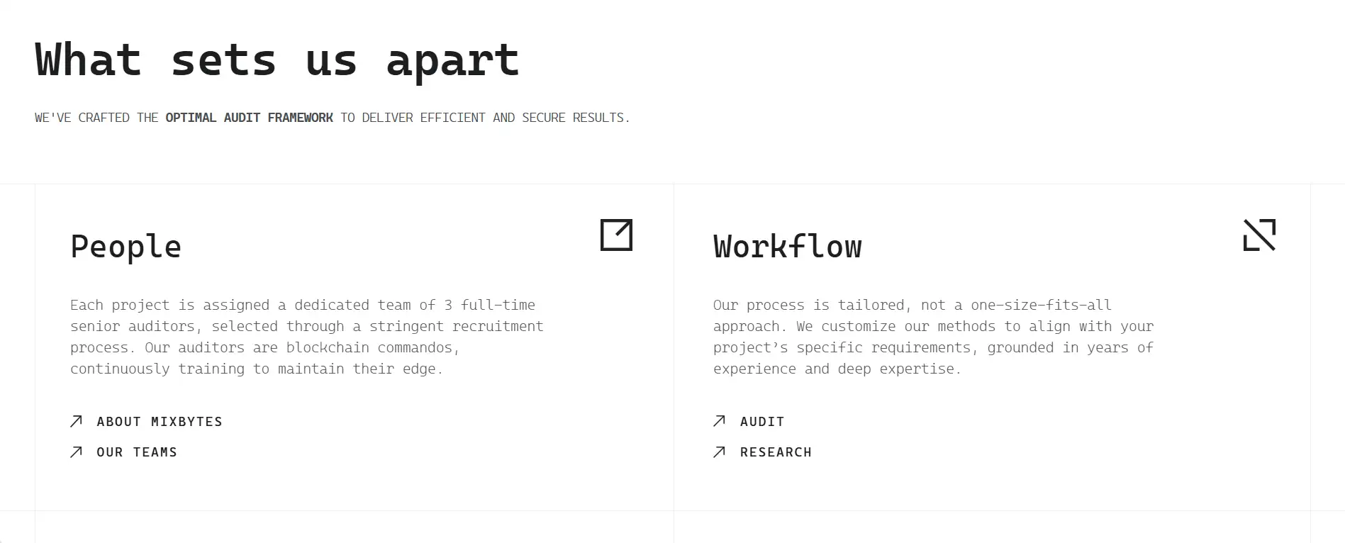 What sets MixBytes apart is its deeply human approach to auditing. Projects are assigned three full-time senior auditors, all of whom undergo rigorous internal training and a structured 1.5-year development path. Clients maintain direct communication with their auditing team, facilitating real-time discussions and iterative reviews. In many cases, the same auditors continue working with returning clients, building familiarity and reducing onboarding time for future engagements.