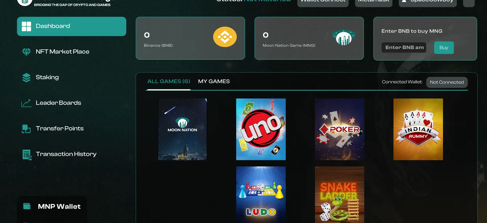 MNBridge can connect any web2 game to blockchain through our APIs. This platform also serves as game dashboard (Leaderboards/Tournaments), MNP/MNG wallet, game download hub, and very near future NFT marketplace.