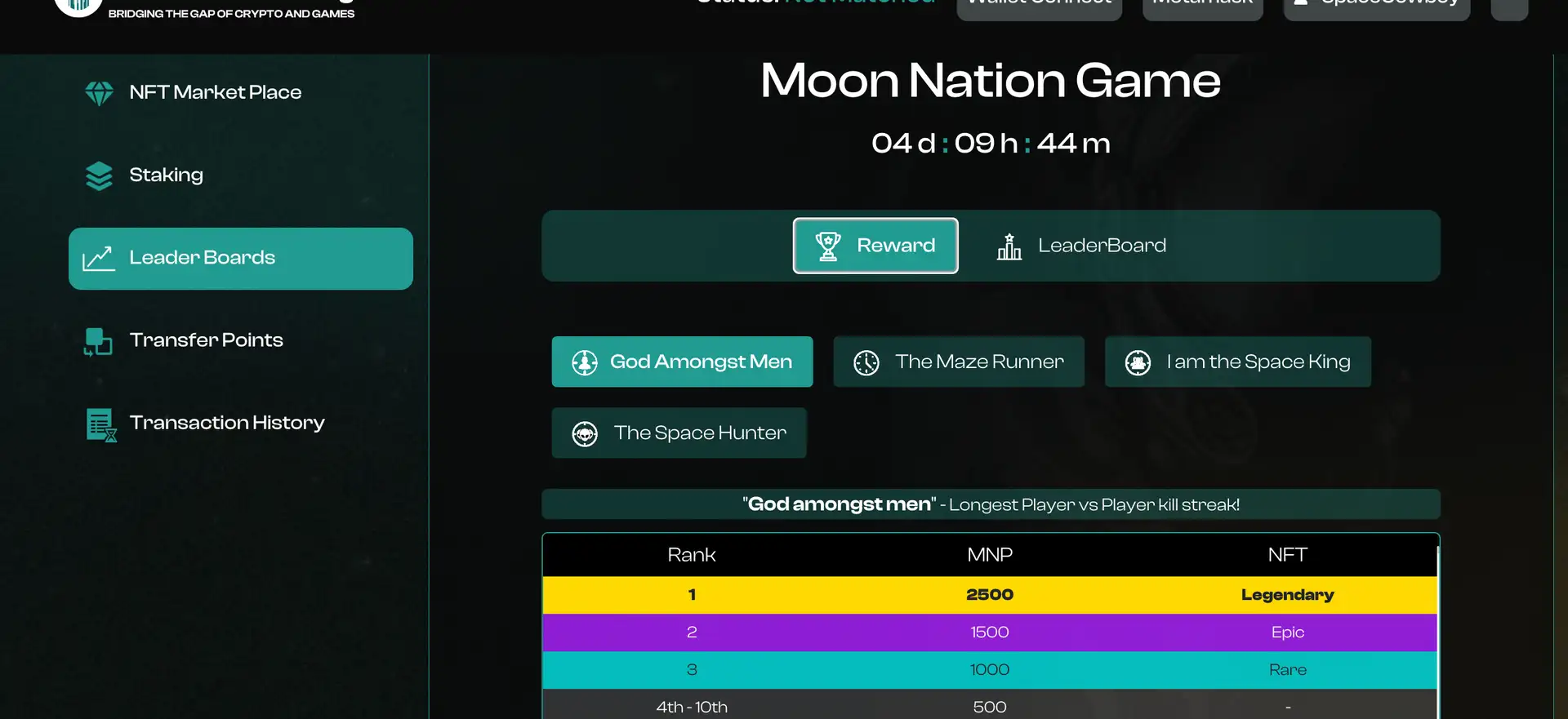 Our app is unique in a way of introducing on-chain (MNG) and an off-chain game token in the form of points (MNP=Moon Nation Points). It is the currency that is used in the onboarded games.