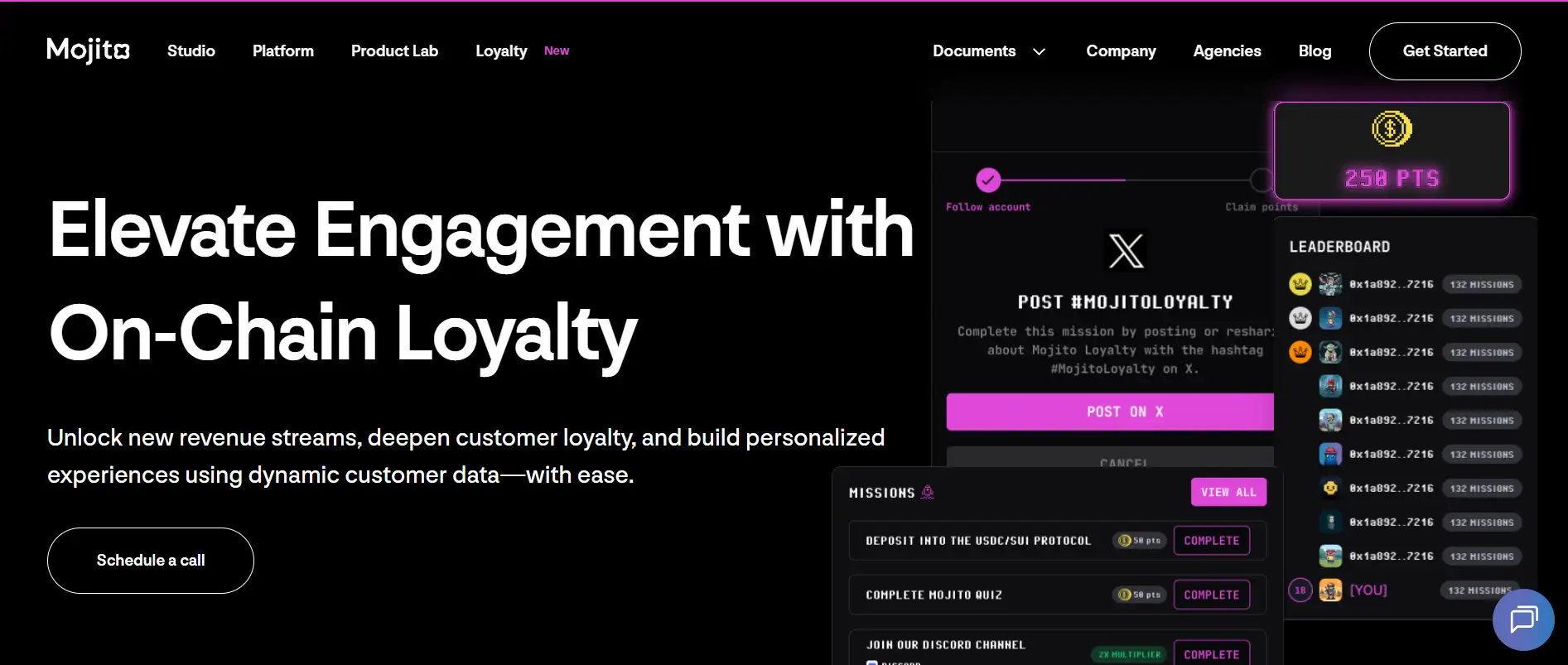 - Mojito Loyalty: A full-featured gamification engine for Web3 engagement that rewards users with XP, tiers, and dynamic NFTs based on on-chain activity—perfect for brands looking to increase user retention.