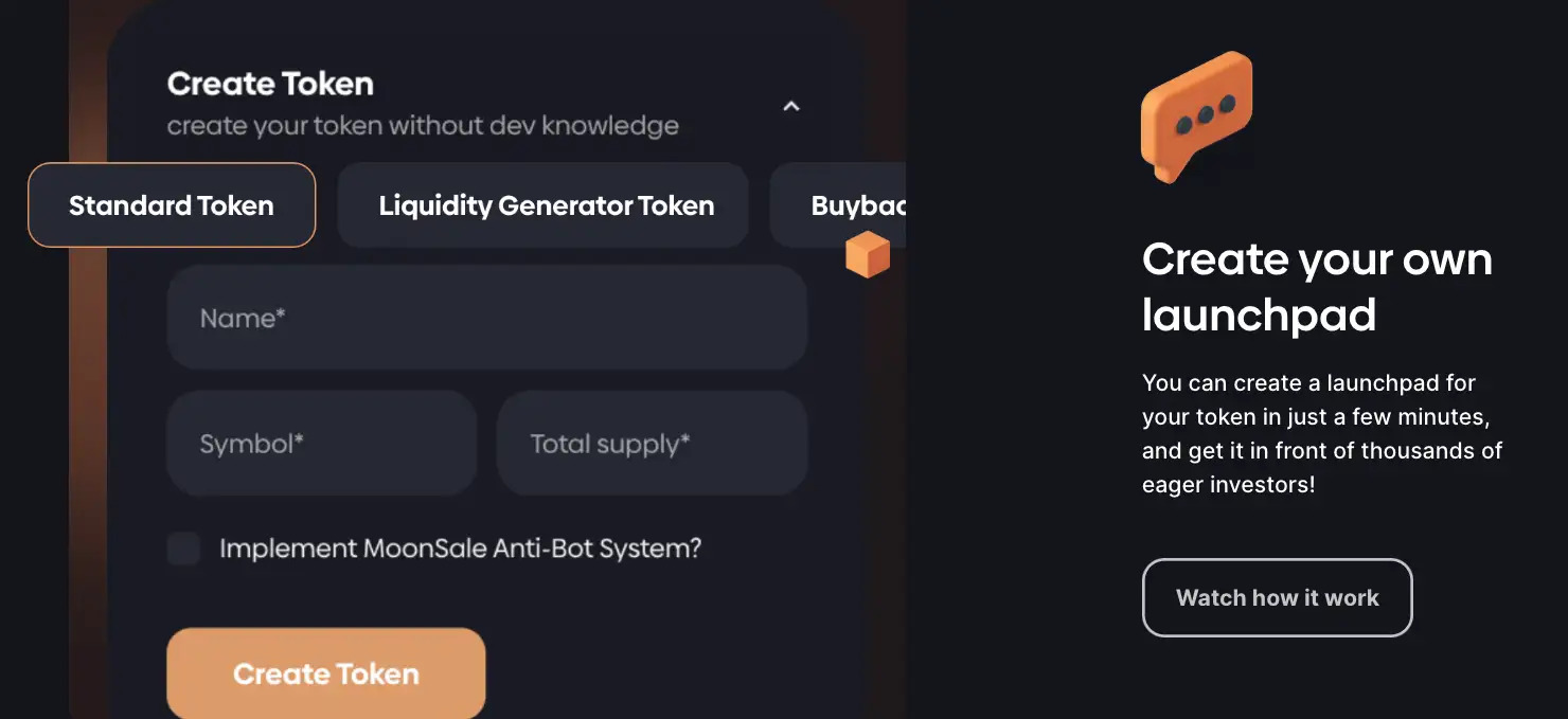 The platform is designed to be accessible even to those with minimal technical expertise, allowing project owners to effortlessly create and manage their token sales. By bridging the gap between project developers and potential investors, MoonSale plays a pivotal role in fostering the growth of new decentralized finance (DeFi) projects and other blockchain-based initiatives. Its support for multiple blockchain networks makes it a versatile choice for launching various types of projects.