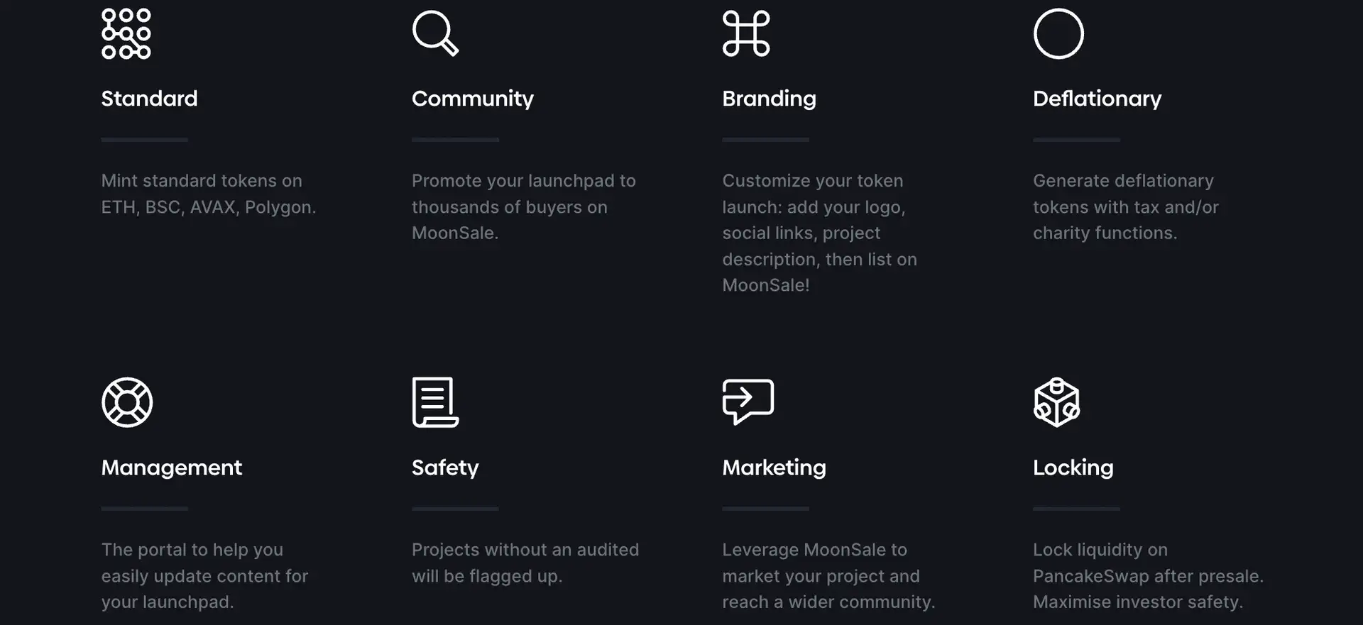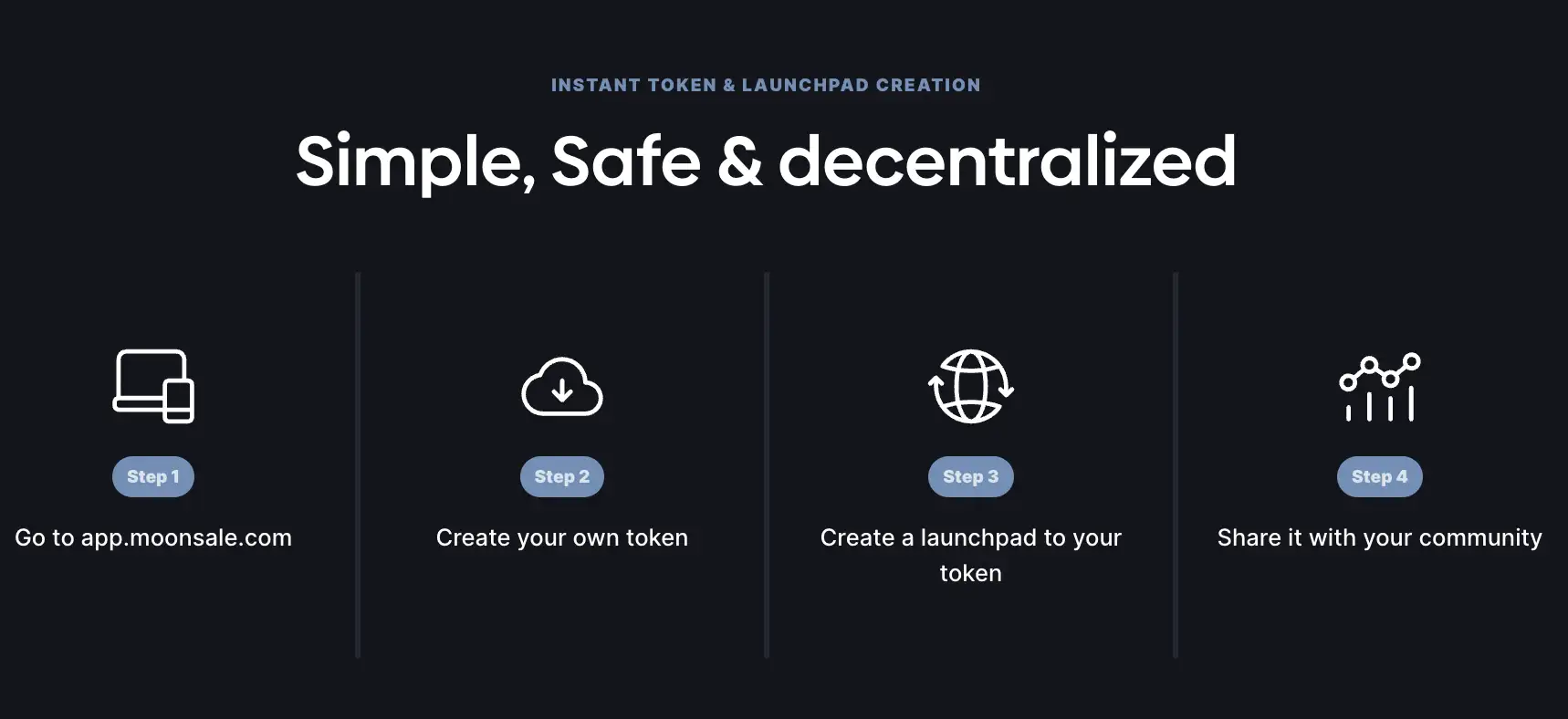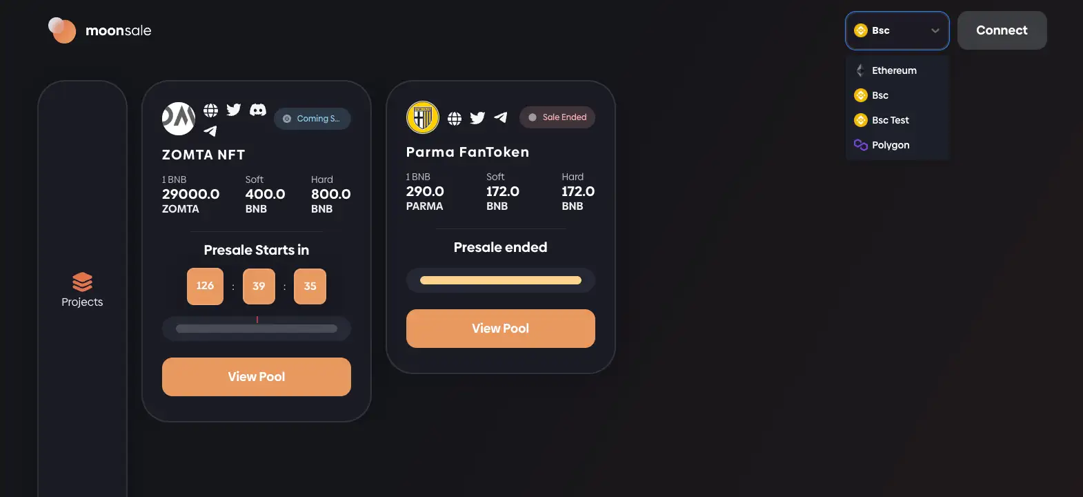 - Multi-Chain Support: MoonSale supports a variety of blockchain networks, including Ethereum, Binance Smart Chain, and Polygon, allowing for greater flexibility and reach in token sales.