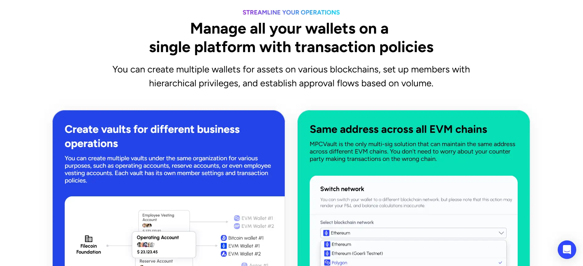 MPCVault offers an all-in-one solution to simplify the complexities of institutional digital asset custody. As a non-custodial wallet built for organizations, it combines multi-chain compatibility, multi-signature approval flows, and developer-first APIs to ensure secure and compliant crypto management. From Bitcoin to Solana, Ethereum, and TRON, MPCVault supports assets across leading blockchain ecosystems.